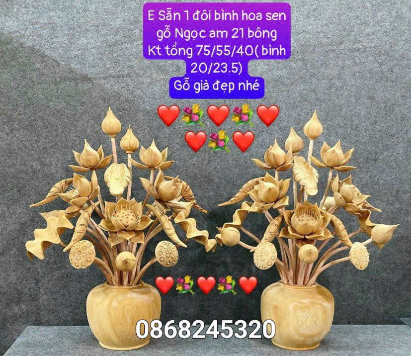chum hoa sen gỗ ngọc am 21 cành cao 80 ngang 60 sâu 45 một bình duy nhất Zalo:0944616060