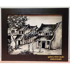 Mua tại TiktokTRANH SƠN MÀI PHỐ CỔ HÀ NỘI Chất liệu sơn mài khảm trai trên gỗ vóc chuyên dụng, đắp nổi thếp vàng, bạc, vỏ trứng Khung đen sần nghệ thuật, chất liệu composite cao cấp Tranh hoàn toàn làm thủ công, bền đẹp cùng thời gian Kích thước 37*47cm