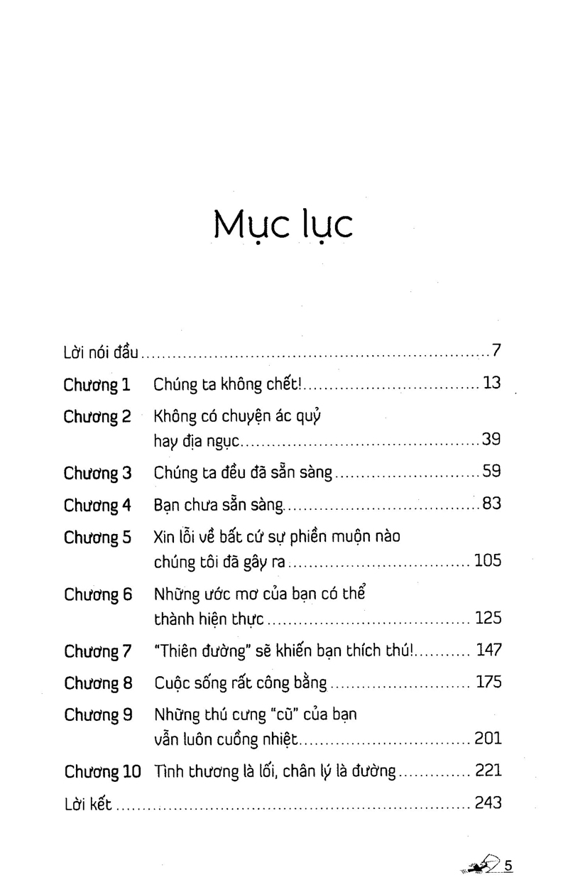 10 Thông Điệp Đầu Tiên Người Chết Muốn Nói Với Bạn “Mike Dooley đã viết một tác phẩm tài tình và sâu sắc, đôi khi hài hước về đời sống – và sự sống ở kiếp sau. Nếu bạn đã từng thắc mắc về bản chất của thực tại, về việc nhân thức đã tạo ra thế giới chúng ta đang sống như thế nào, về thời gian, không gian, cuốn sách này đã đáp ứng các câu hỏi của bạn và khiến bạn thức tình”… (Colette Baron-Reid, tác giả cuốn The Map, Messages from Spirit và nhiều sách khác.) “Mike Dooley đã viết một cuốn sách mới mẻ, mạnh mẽ, làm thay đổi tư duy của bạn để bạn có thể sống một cuộc sống trọn vẹn nhất trong khi thân xác vẫn còn ở trên trần gian này”. (Mike Robbins, tác giả cuốn Nothing Changes Untill You Do)