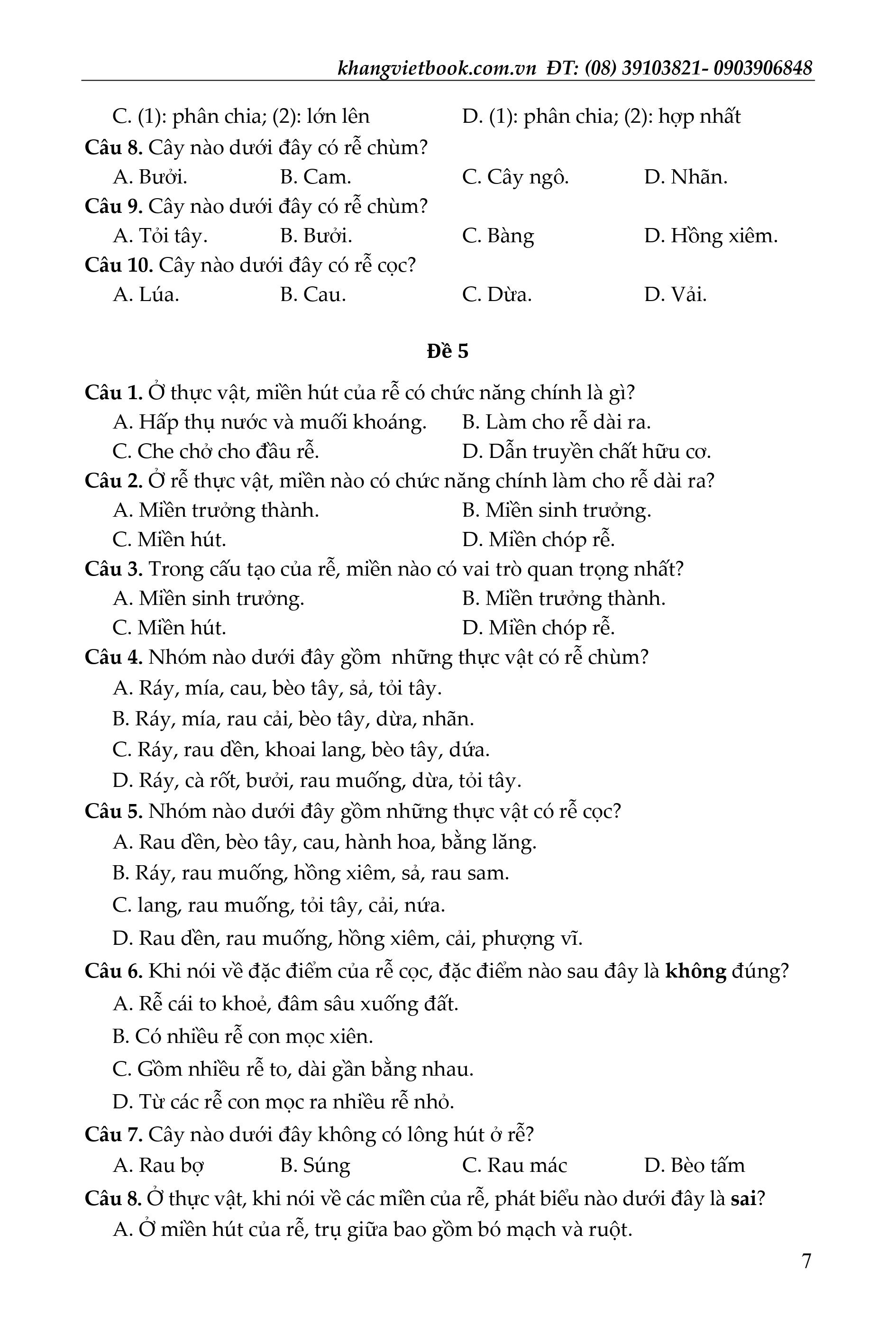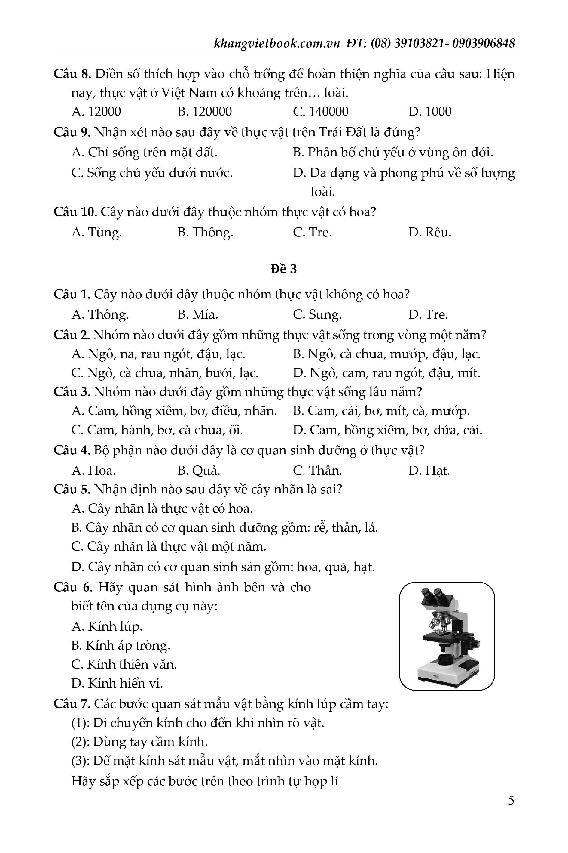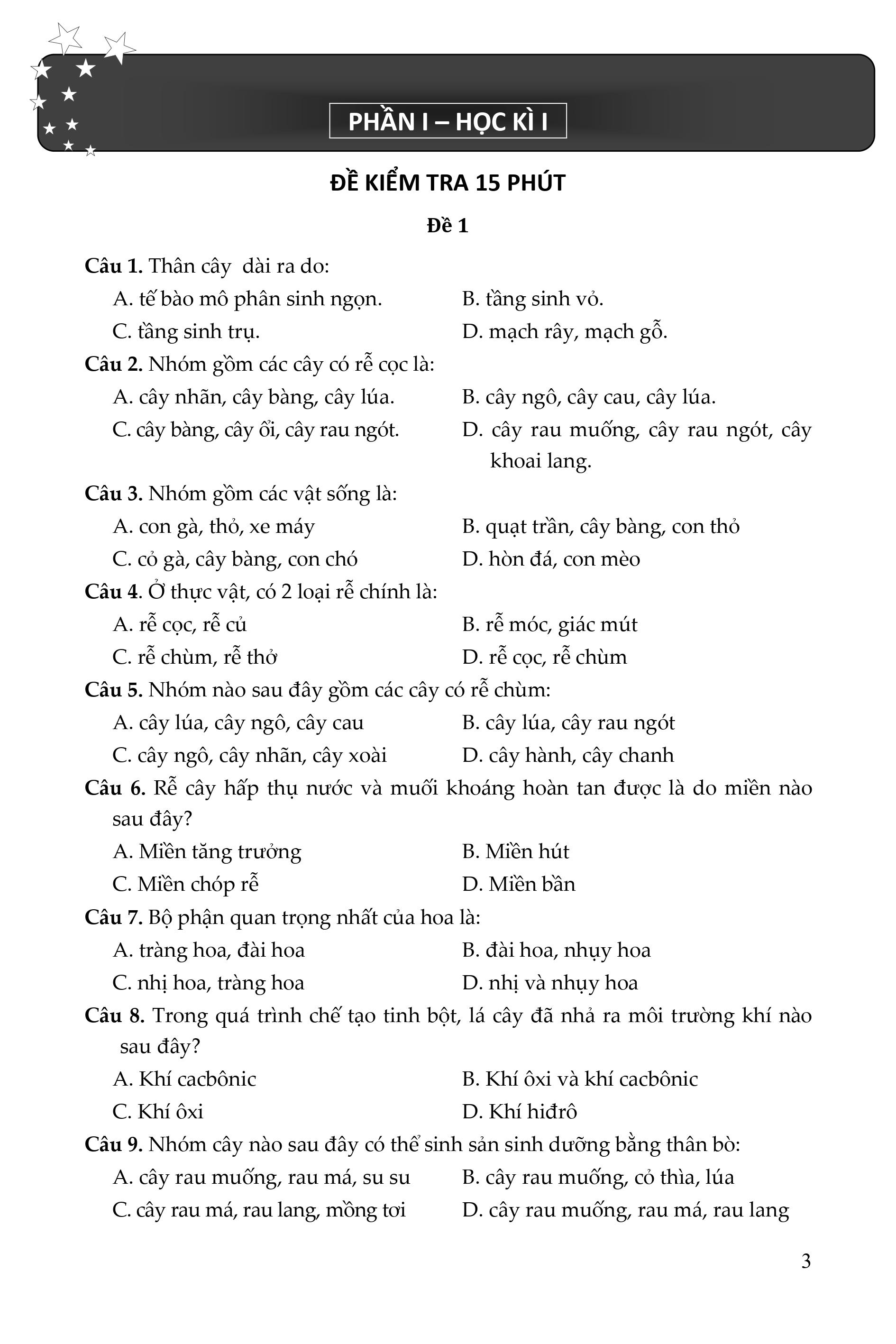 Sách được viết theo 3 loại đề kiểm tra trong chương trình Sinh học 6. Cụ thể được thiết kế như sau: