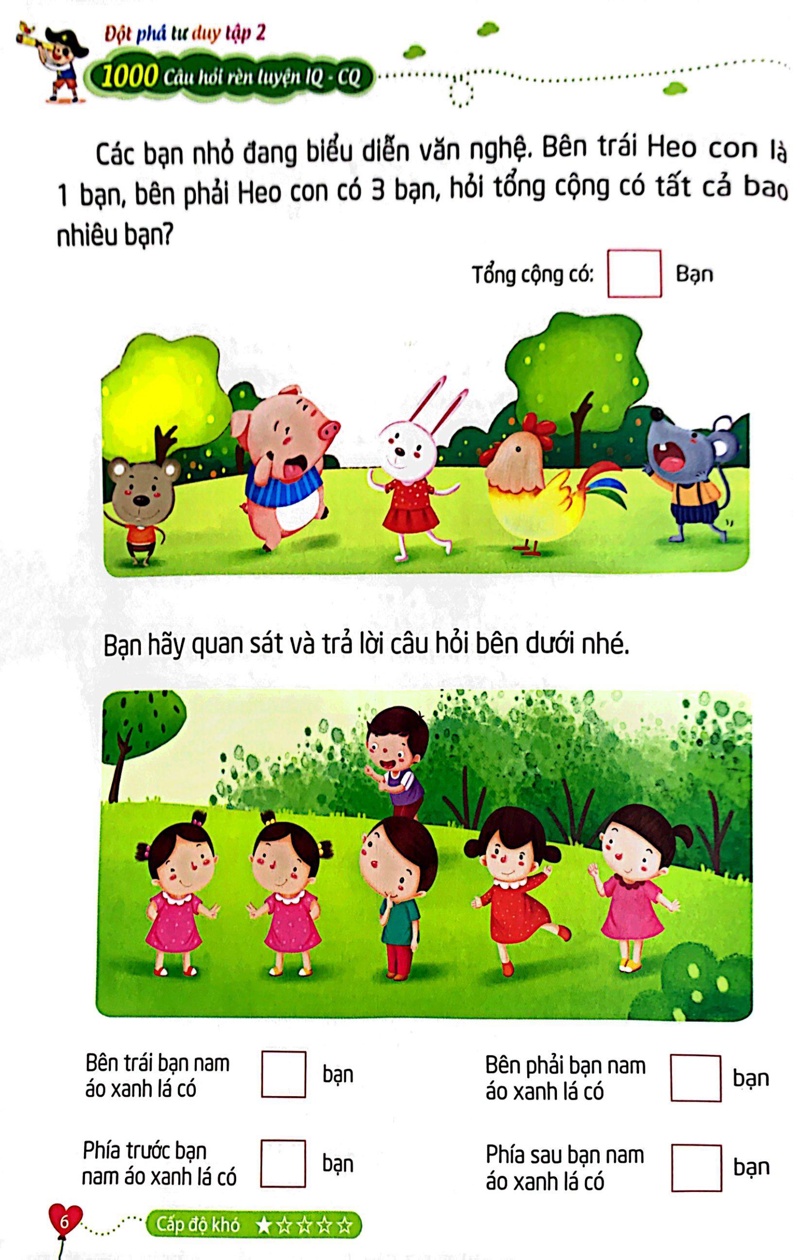 Cuốn sách gồm 1000 câu hỏi rèn luyện, giúp trẻ phát triển chỉ số thông minh IQ và chỉ số sáng tạo CQ thông qua trò chơi thú vị nhằm giúp trẻ rèn luyện các kỹ năng, tiếp thu thêm kiến thức đồng thời phát huy tối đa tiềm năng trí tuệ