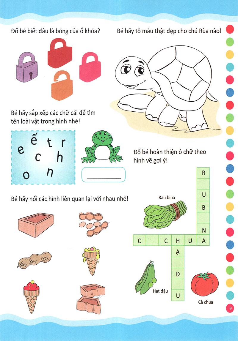 Quyển sách, có tô màu, có tính toán, có vẽ tranh, có trò chơi tìm đồ vật cất giấu, nối hình cho những sự vật hiện tượng có liêu quan, có tư duy logic… Bé từ đó được làm các dạng trò chơi khác nhau để phát triển về tư duy. Thông qua các trò chơi tư duy này, bạn có thể giúp bé rèn luyện trí não một cách tốt nhất, giúp bé biết hệ thống, luôn tự tin và biết cách xử lý các tình huống một cách nhạy bén hơn.