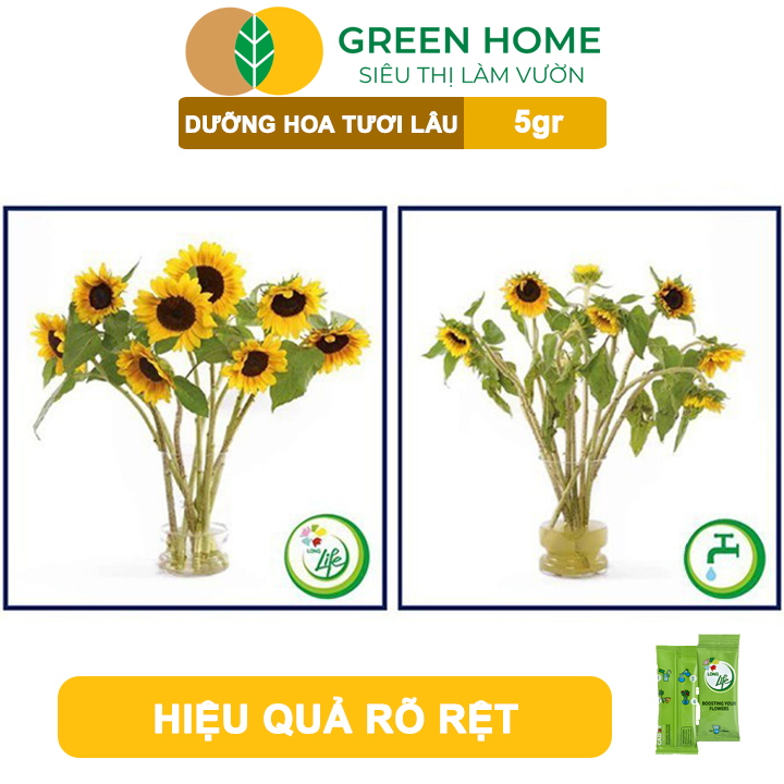 Dưỡng hoa tươi lâu longlife Greenhome, gói 5gr, lâu tàn, nở bông to, không bị hôi nước
