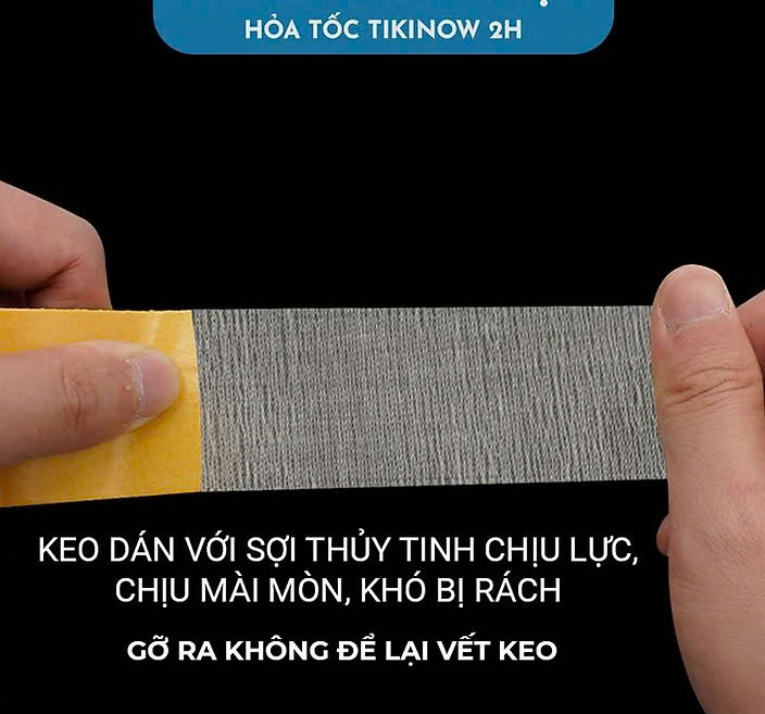 Mô tả sản phẩm Keo 2 Mặt Sợi Thủy Tinh Cường Lực Dán Thảm Trải Sàn, Keo Chống Nước, Không Để Vết Keo Đóng gói: 1 cuộn keo 2 mặt sợi thủy tinh ️ Tính năng Keo 2 mặt với độ dính siêu chắc chắn, nhưng lại có thể tháo gỡ và không để lại vết keo. Keo được tráng trên một lưới sợi thủy tinh, giúp tăng độ chịu lực và chống nước. Sử dụng để cố định thảm trải sàn, dán vật dụng trong nhà ️ Thông số Loại keo: keo acrylic Chất liệu: sợi thủy tinh, nhựa Kích thước: bản rộng từ 10mm - 50mm, chiều dài cuộn keo là 10 mét. ️ Cách sử dụng: Lau sạch bề mặt trước khi dán. Đảm bảo bề mặt không dính bụi, nước hay dầu mỡ.