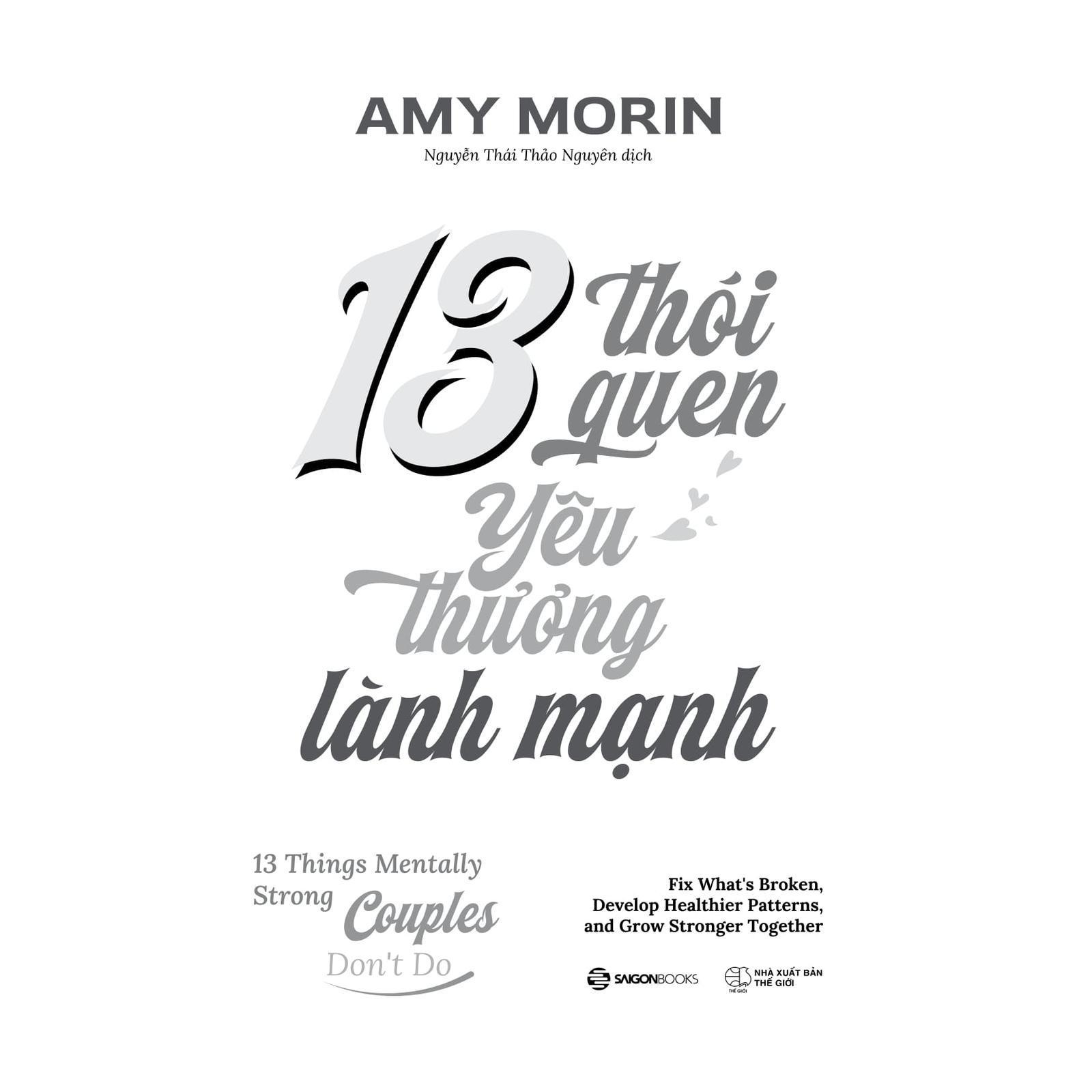 13 Thói Quen Yêu Thương Lành Mạnh - 13 Things Mentally Strong Couples Don't Do Bí quyết để cùng nhau chữa lành, phát triển và bền vững trong yêu thương Không chỉ yêu – hãy yêu một cách mạnh mẽ và lành mạnh Có bao giờ bạn tự hỏi: Tại sao dù đã cố gắng hết mức, tình yêu vẫn dần nhạt phai? Có thể bạn đang chăm chỉ vun đắp bằng những điều nên làm – nhưng lại vô tình giữ lại những điều không nên làm. Trong cuốn 13 Thói Quen Yêu Thương Lành Mạnh, nhà trị liệu tâm lý Amy Morin – tác giả của 13 điều người có tinh thần thép không làm – đưa ra một hướng tiếp cận khác biệt: Loại bỏ những thói quen xấu đang âm thầm làm tổn thương tình yêu. Cuốn sách không dạy bạn cách yêu lý tưởng, mà hướng dẫn bạn trở thành phiên bản tốt hơn trong mối quan hệ thật sự – dù bạn đang hạnh phúc, đang bối rối, hay đang đứng giữa ranh giới tiếp tục hay dừng lại. Một cuốn sách chữa lành – và đồng hành thực tế Từ chương đầu tiên – “Không phớt lờ vấn đề” – đến chương cuối cùng – “Không ngừng phát triển và thay đổi”, mỗi phần trong sách đều mang tinh thần thực tế, thẳng thắn nhưng đầy cảm thông. Không lý thuyết suông, không sáo rỗng, Amy Morin viết bằng chính câu chuyện của mình – từ một người vợ hạnh phúc, trở thành góa phụ ở tuổi 26, và rồi học cách yêu lần nữa với tất cả sự trưởng thành, tổn thương và hy vọng. Bạn sẽ tìm thấy những mẫu chuyện đời thực, bài tập thực hành, câu hỏi tự phản tư, và cả lời khuyên từ các chuyên gia trị liệu hôn nhân. Dù bạn đọc một mình hay cùng người thương, cuốn sách luôn gợi mở một cách để bắt đầu một cuộc trò chuyện lành mạnh thay vì một cuộc tranh cãi mới. Cẩm nang cho những ai muốn yêu lâu – và yêu sâu 13 chương sách tương ứng với 13 “điều các cặp đôi tinh thần mạnh mẽ không làm” – chẳng hạn như: không phớt lờ vấn đề, không giao tiếp thiếu tôn trọng, không dùng cảm xúc làm vũ khí, không cố gắng sửa đổi nhau, không quên lý do bắt đầu,… Mỗi chương đều lồng ghép các tình huống thực tế, những câu hỏi phản tư, bài tập thực hành và lời khuyên chuyên môn từ các chuyên gia tâm lý trị liệu. Đặc biệt, cuốn sách khuyến khích người đọc tiếp cận một cách linh hoạt – bạn có thể đọc theo thứ tự, hoặc chọn đúng vấn đề mình đang đối diện và bắt đầu từ đó. Cuốn sách dành cho mọi ai đang có mối quan hệ – từ yêu đương đến hôn nhân – và muốn nó trở nên bền vững. Bạn sẽ nhận diện được các thói quen gây tổn hại như: giao tiếp thiếu tôn trọng, im lặng vì sợ mâu thuẫn, mong đợi người kia thay đổi theo ý mình... Không ai hoàn hảo, và tình yêu cũng không cần hoàn hảo – nhưng nếu đủ mạnh mẽ để nhìn lại chính mình, bạn sẽ đủ mạnh mẽ để thay đổi cả mối quan hệ. Theo khảo sát được Amy Morin thực hiện năm 2023 với hơn 1.000 cặp đôi, 86% người được hỏi cho biết họ mong muốn củng cố mối quan hệ – và phần lớn tin rằng điều đó khả thi nếu họ xây dựng được sức mạnh tinh thần. Cuốn sách này là một cẩm nang để bạn bắt đầu từ chính mình, bước đầu tiên để yêu một cách bền vững và đủ vững vàng cho cả hai. Dành cho những ai đang yêu, đã cưới, hoặc từng đau khổ vì tình yêu, “13 Thói Quen Yêu Thương Lành Mạnh” không phải là cuốn sách chỉ để đọc cho vui. Nó là hành trình nhận diện – chữa lành – phát triển, để mối quan hệ của bạn không chỉ tồn tại, mà thật sự tốt đẹp và đáng sống.
