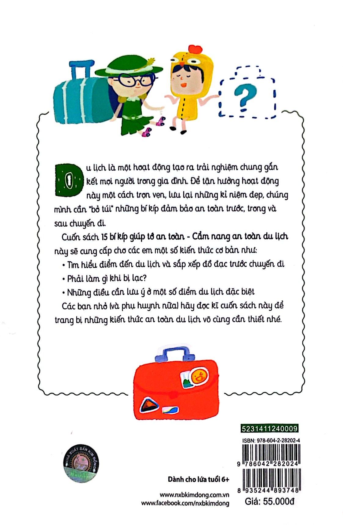 15 Bí Kíp Giúp Tớ An Toàn – Cẩm Nang An Toàn Du Lịch trang bị những kiến thức cần thiết dành cho các bạn nhỏ (và cả các vị phụ huynh) để có một chuyến du lịch an toàn và thú vị, như: