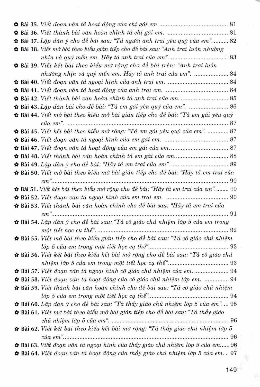 Trong cuốn sách này, tác giả giới thiệu 6 dạng bài làm văn khác nhau để các em luyện tập: