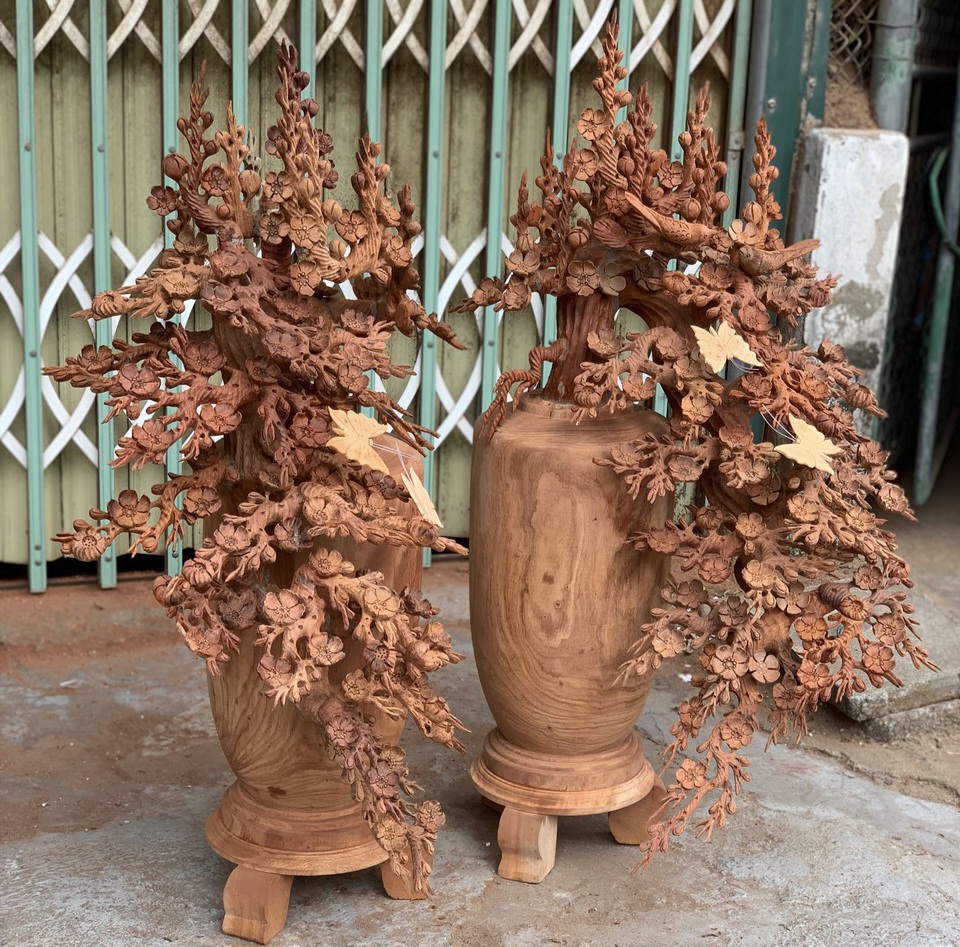 ✨2 bình hoa mai lan phú quý phong thủy bằng gỗ hương kt cao 98×55×50cm đẹp long lanh