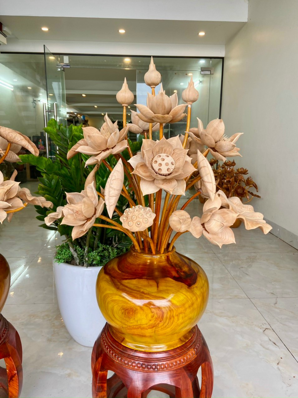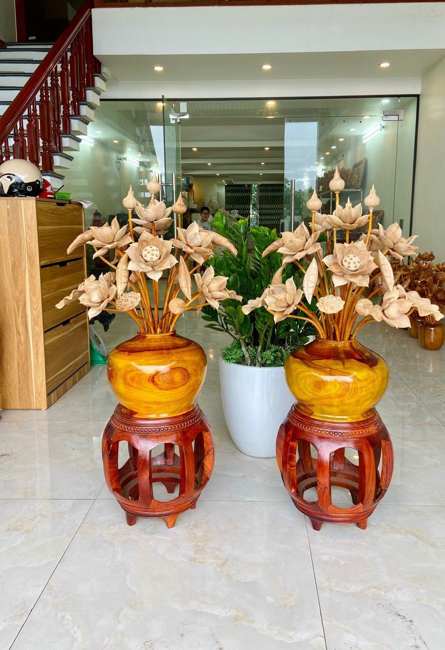 Bình hoa sen gỗ Ngọc am mùi cực thơm cao 1m2, wooden lotus