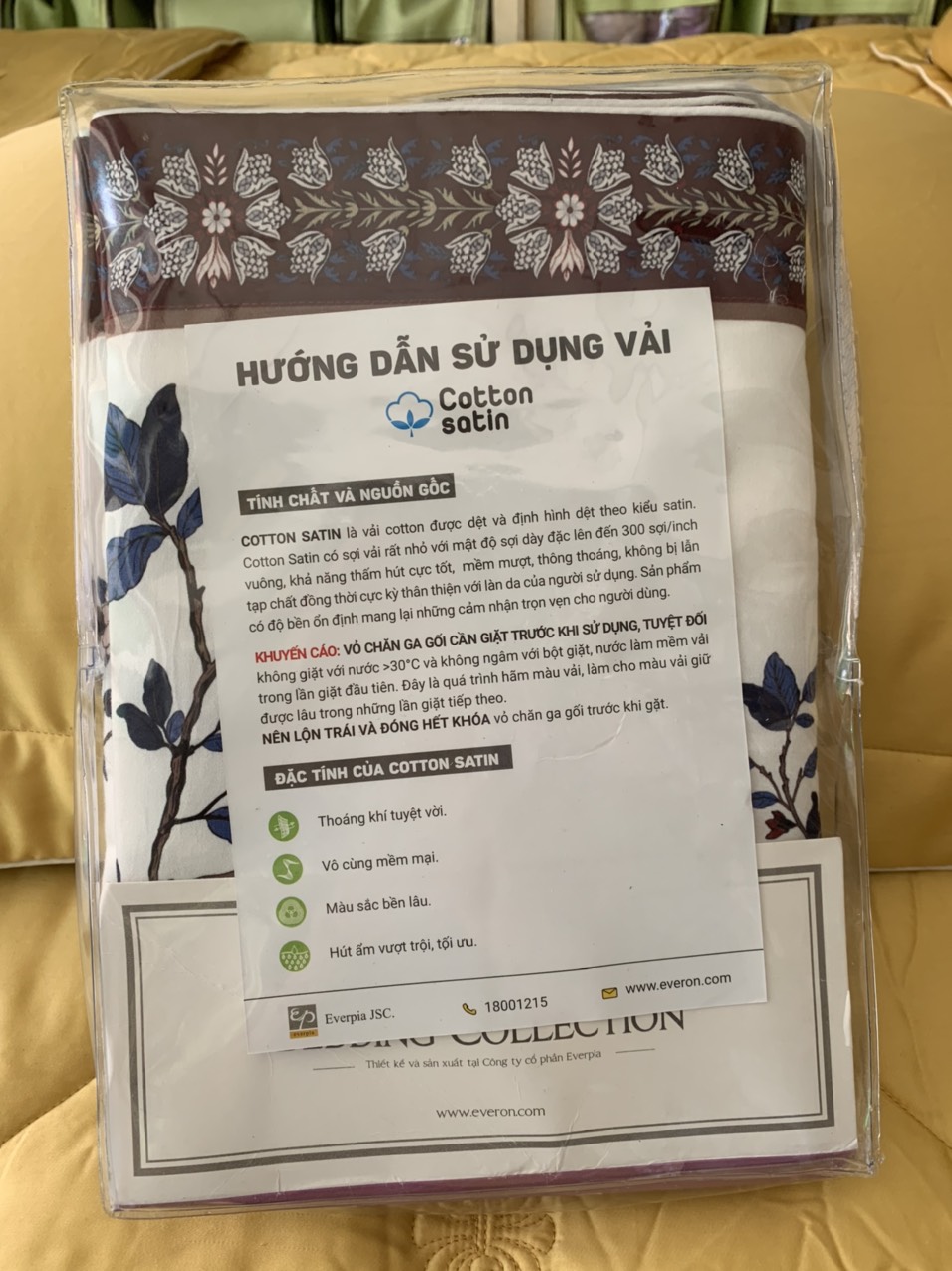Cotton Satin có sợi vải rất nhỏ với mật độ sợi dày đặc lên đến 300 sợi/inch vuông, khả năng thấm hút cực tốt, láng bóng, mềm mượt, thông thoáng, không bị lẫn tạp chất đồng thời cực kỳ thân thiện với làn da của người sử dụng. Độ bền của sản phẩm cũng luôn được duy trì ở mức ổn định nhất, mang lại những cảm nhận trọn vẹn cho người dùng.