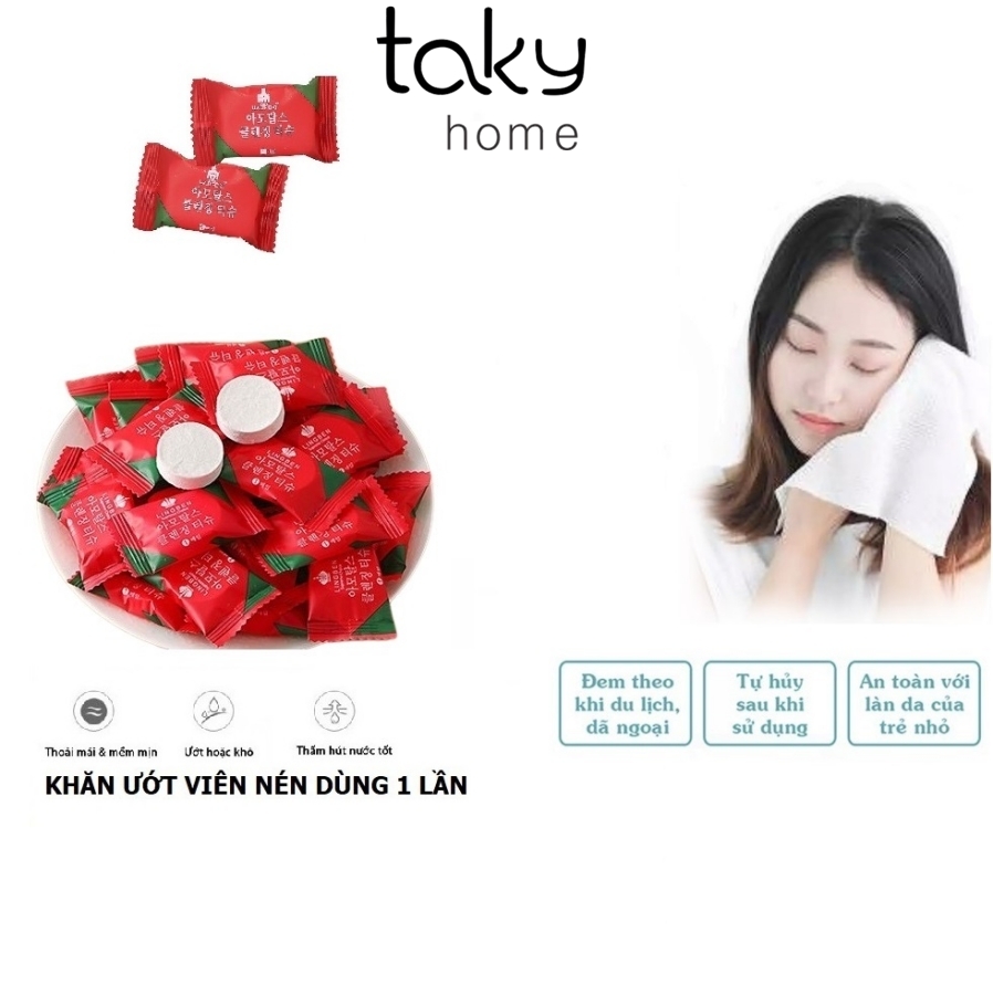 ✨20 Khăn Ướt Dạng Viên Nén, Chất Liệu Mềm, Mịn, Dùng 1 Lần Tiện Dụng, Nhỏ Gọn, Sạch Sẽ, TakyHome 5850Set20