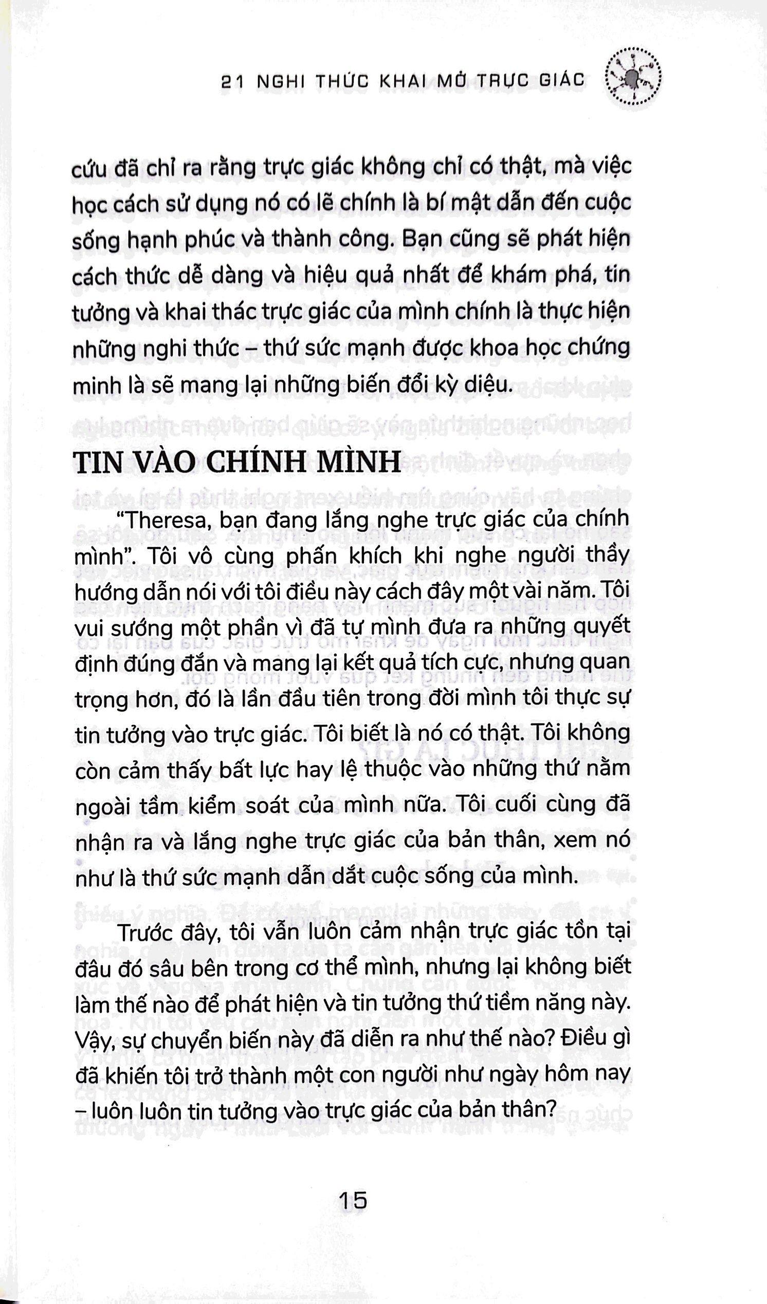 21 Nghi Thức Khai Mở Trực Giác Bạn đã từng được cứu mạng trong một tình huống nguy hiểm nhờ nghe theo giọng nói bí ẩn trong đầu mình chưa? Bạn có từng cảm thấy bồn chồn trong bụng hoặc bị đau dạ dày khi gặp ai đó? Bạn có từng tung đồng xu để quyết định một vấn đề khó khăn nào chưa? Nếu câu trả lời là “Có”, hẳn bạn không quá xa lạ với khái niệm “trực giác”. Nhưng chính xác thì “trực giác” là gì? Có quan hệ gì với ta và giúp ích gì cho cuộc sống của ta? Ta giao tiếp với trực giác bằng cách nào? Quyển sách 21 Nghi Thức Khai Mở Trực Giác sẽ giúp bạn trả lời những câu hỏi này.