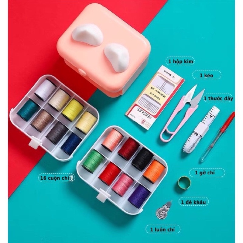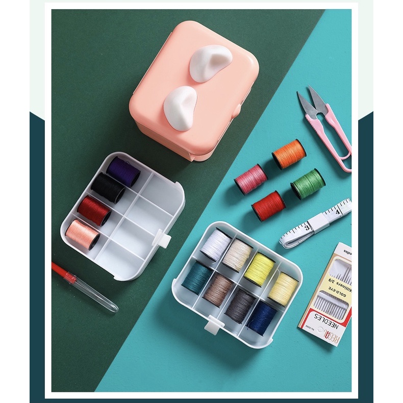 Mở hộp và sắp xếp kim chỉ may vá vào các ngăn theo nhu cầu sử dụng.