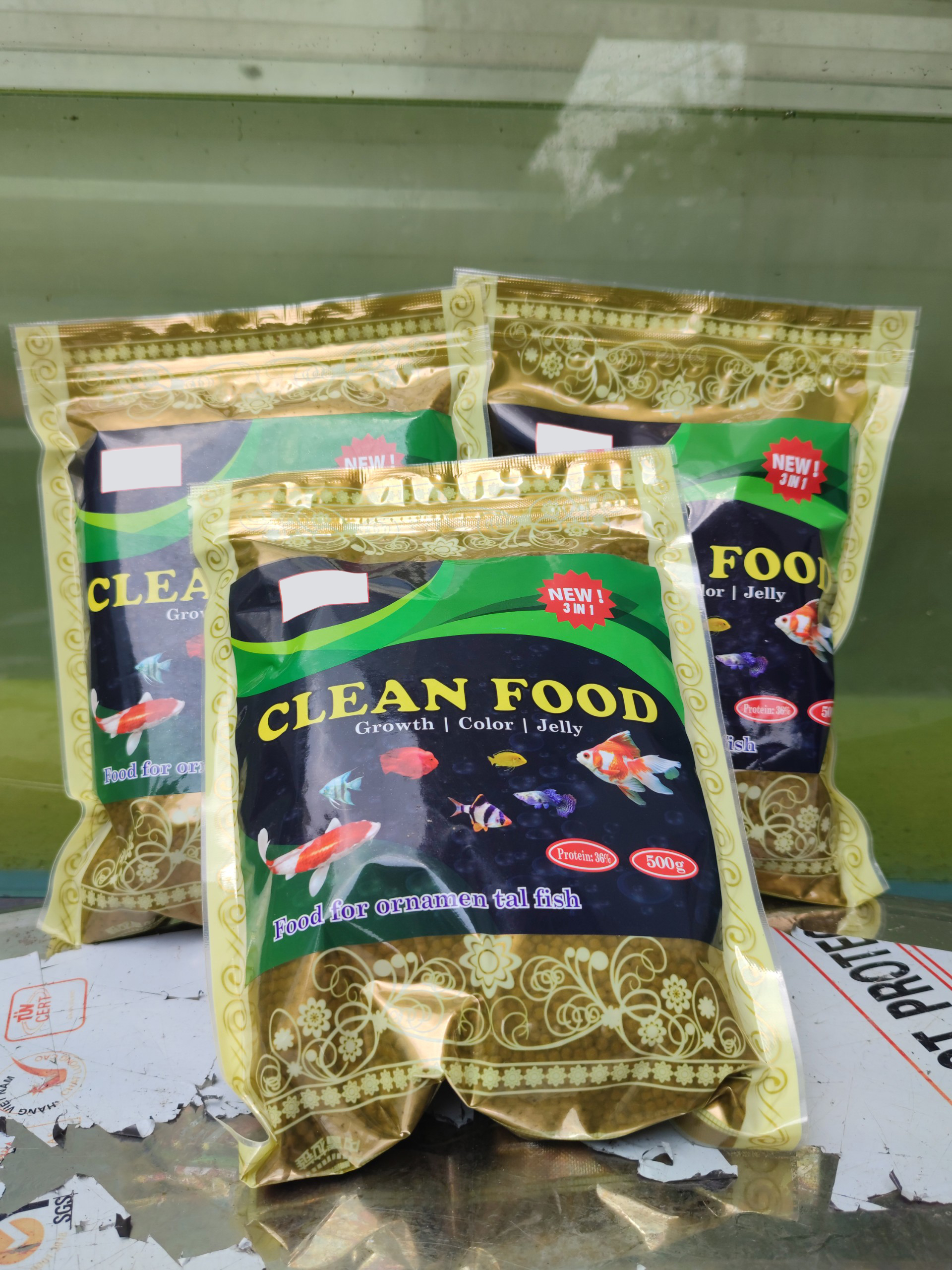 • Ngoài ra, CLEAN FOOD chứa tảo rất tốt, thành phần quan trong giúp cá lên màu đẹp