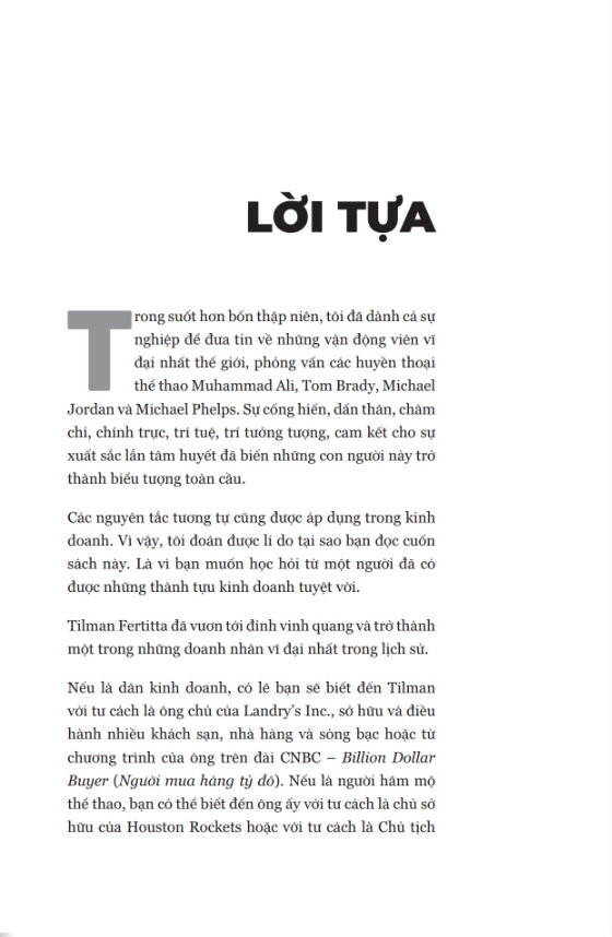 Tilman Fertitta là một doanh nhân xuất sắc toàn diện và được xem là lãnh đạo thế giới trong nền công nghiệp nhà hàng, khách sạn, giải trí và cờ bạc. Forbes gọi ông là “chủ nhà hàng giàu có nhất trên thế giới.” Fertitta là ngôi sao trong chương trình truyền hình thực tế của riêng mình trên kênh CNBC, Billion Dollar Buyer, và cũng là chủ sở hữu duy nhất của công ty Fertitta Entertainment, quản lý chuỗi nhà hàng Landry’s khổng lồ, sòng bạc Golden Nugget và chuỗi khách sạn, đội bóng rổ Houston Rockets thi đấu tại giải bóng rổ nhà nghề nước Mỹ NBA.