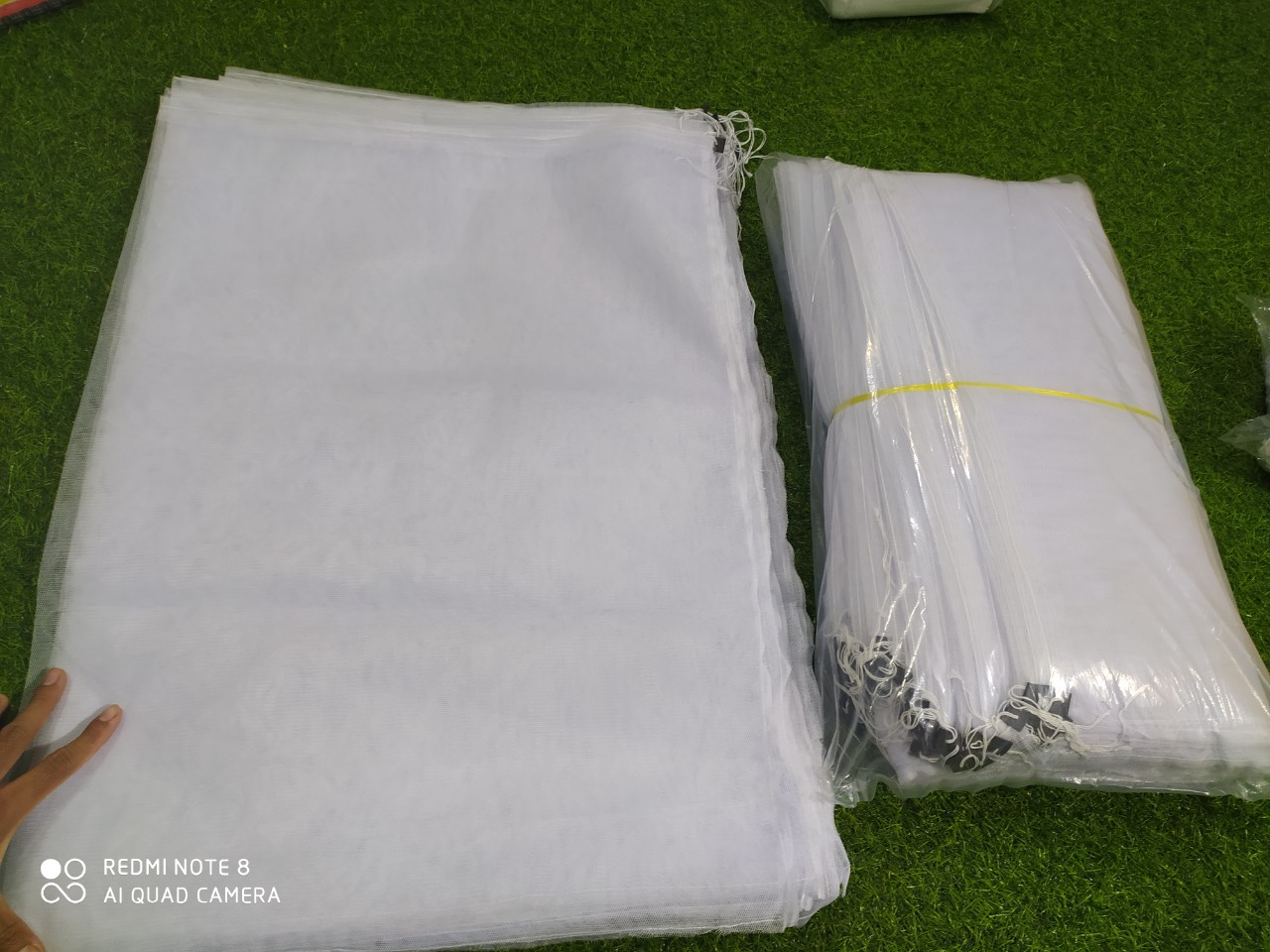 BAO TRÁI MÍT LƯỚI MÙNG CÓ DÂY RÚT -------------------------------------------------- - Kích thước: 50x70cm - Chất liệu: lưới mùng - Kiểu bao: Dạng túi có dây rút Lợi ích sử dụng bao trái trên cây trồng