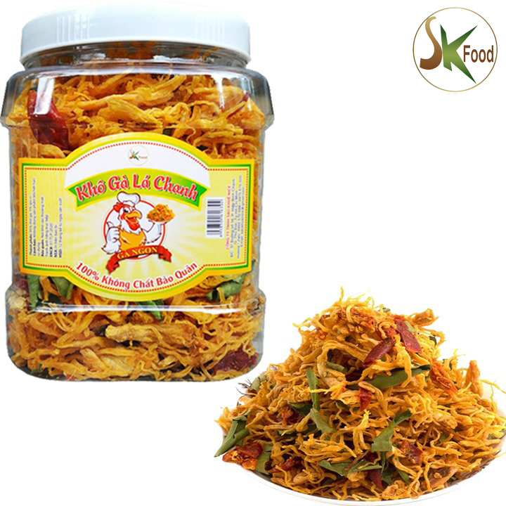 KHÔ GÀ XÉ LÁ CHANH THƯỢNG HẠNG Xuất xứ: Việt Nam. Hạn sử dụng: 12 tháng kể từ ngày sản xuất. Quy cách đóng gói: hủ nhựa pet cao cấp Khô gà lá chanh