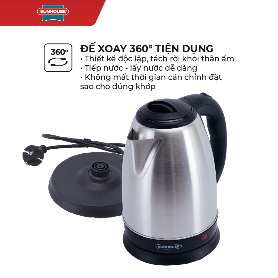 Ấm đun có đế tiếp điện có thể xoay 360 độ sẽ giúp bạn thuận tiện hơn khi đặt ấm nấu ở những phương hướng, góc độ khác nhau.
