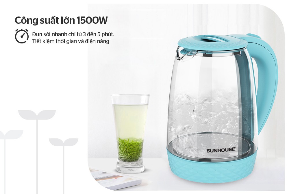 ✨Ấm siêu tốc thủy tinh Sunhouse SHD1215 - Hàng Chính Hãng