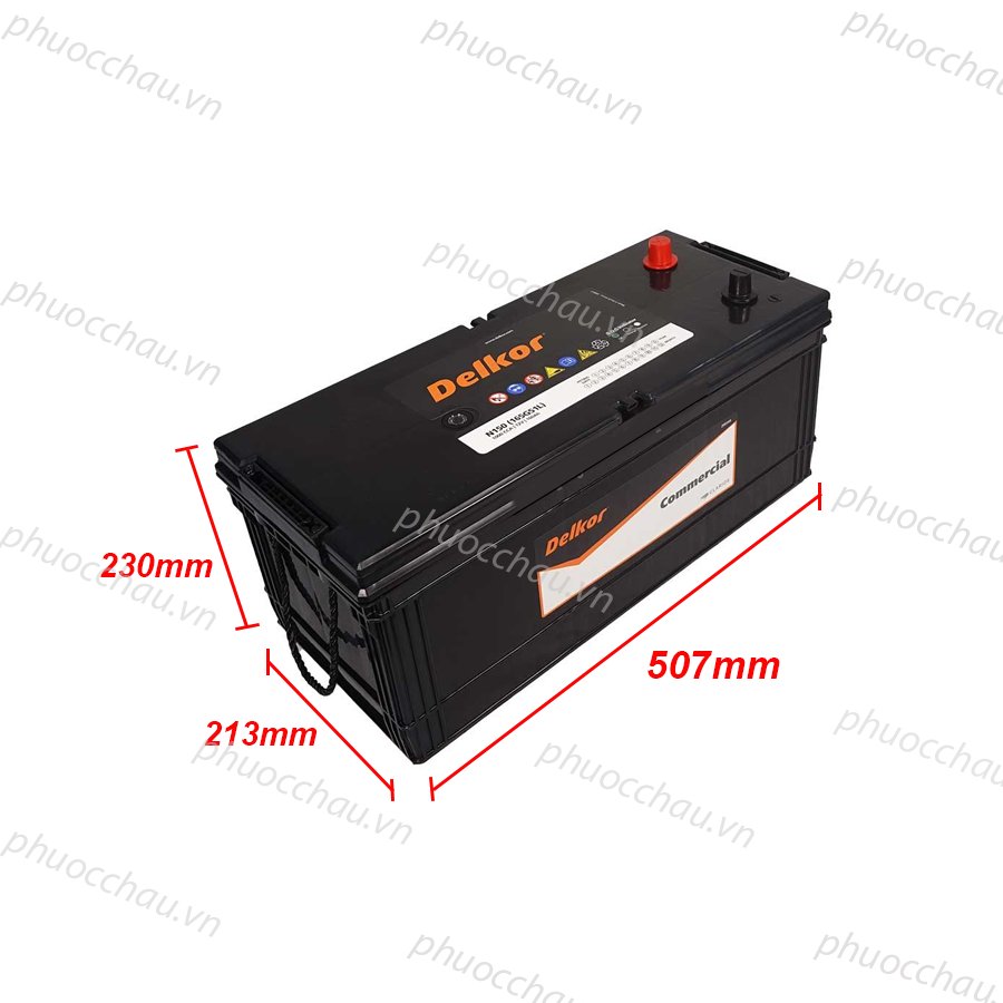 - Chính vì vậy ngày nay, ắc quy Delkor nổi tiếng về chất lượng và thực tế là một trong những sản phẩm tốt nhất thế giới. Thông số kỹ thuật của bình Delkor N150 (12V - 150Ah) :