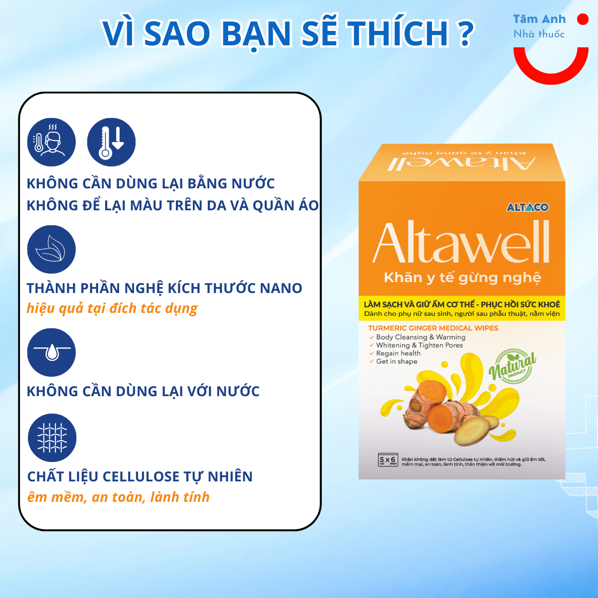 Khám phá 1 hộp SP Khăn y tế Gừng nghệ Altawell- Phục hồi sức khỏe, lấy lại vóc dáng-làn da có gì?