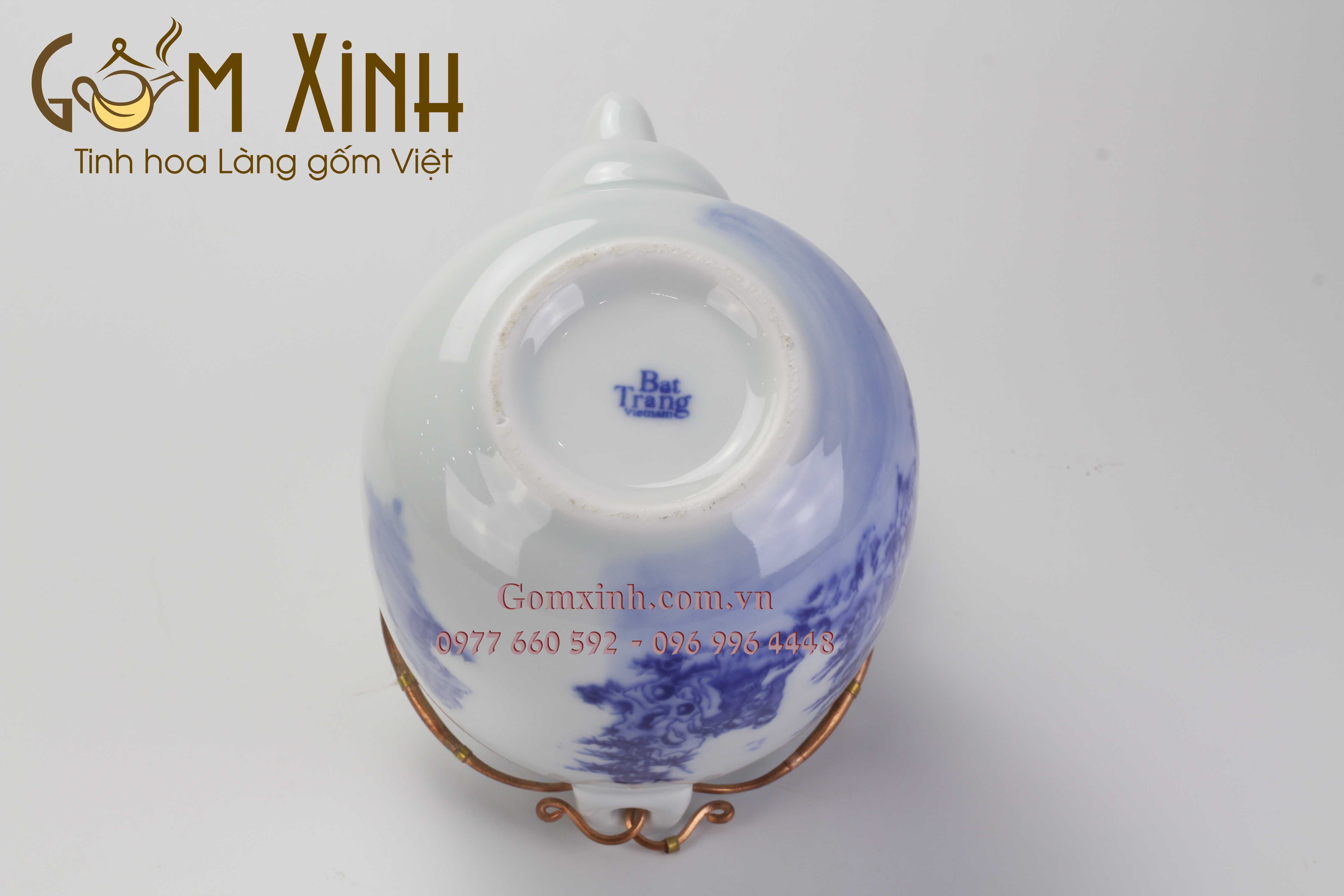 Bộ ấm tích 1,5 lít Trúc Lâm Thất Hiền men lam Bát Tràng. #amchenbattrang #truclamthathien