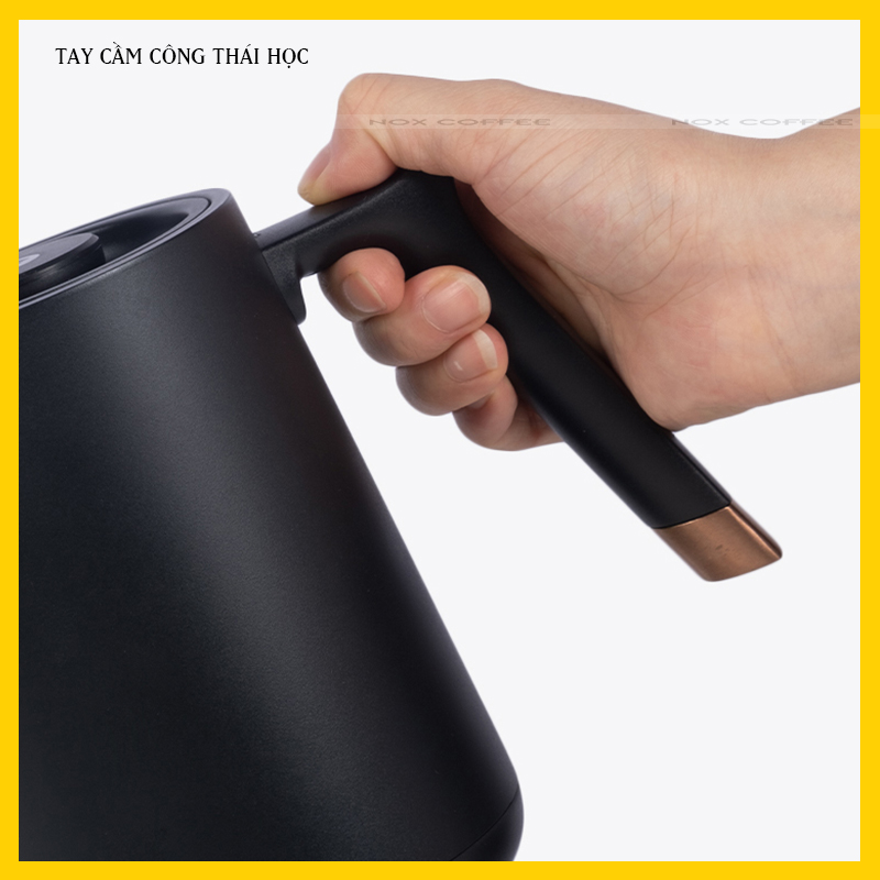 - Chất liệu: Inox 304, sơn tĩnh điện, nhựa Polypropylene Mô tả chi tiết Nhiệt độ trong chiết xuất cà phê là một trong những yếu tố then chốt ảnh hưởng đến hương vị của cà phê. Vì vậy, trong một bộ pha cà phê, việc sở hữu một ấm đun có kiểm soát nhiệt độ sẽ giúp công việc pha cà phê trở nên dễ dàng hơn. Ấm tích hợp bộ đế đun có tùy chỉnh nhiệt độ từ 40 – 100 độ bằng thanh trượt cảm ứng, giúp người dùng có thể đun nước ở nhiệt độ chính xác hơn, bạn không cần đến nhiệt kế để đo nhiệt độ nữa. Tính năng giữ nhiệt lên đến 1 giờ giúp giữ nhiệt độ pha tối ưu trong thời gian dài hơn. Dung tích nước 600ml, lượng nước vừa đủ có thể pha một bình Pour Over cho 1-2 người, dung tích nhỏ cũng là lợi thế giúp bình nhanh sôi hơn, trọng lượng cũng nhẹ hơn giúp cầm rót dễ dàng và không bị mỏi tay. Ấm rót có thiết kế vòi cổ ngỗng được cắt vát 90 độ, tạo dòng chảy mềm mại, tích hơp van tiết lưu giúp kiểm soát dòng nước rót ra tốt hơn Tay cầm thiết kế công thái học: Cân bằng – giảm thiểu tối đa trọng lực tác động nên cánh tay Nắp ấm chống trầy xước: Loại bỏ tình trạng hay bị tróc sơn ở miệng ấm, làm mất thẩm mĩ Ấm cũng cực kì an toàn khi có chế độ tự ngắt khi cạn nước Sản phẩm này là tài sản cá nhân được bán bởi Nhà Bán Hàng Cá Nhân và không thuộc đối tượng phải chịu thuế GTGT. Do đó hoá đơn VAT không được cung cấp trong trường hợp này.