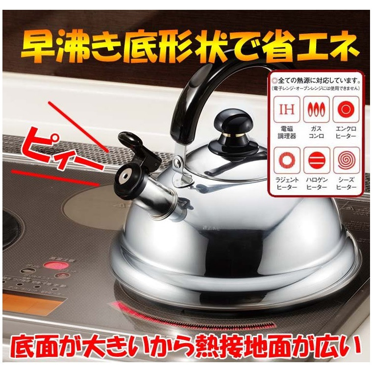 Ấm đun nước dành cho bếp từ Quick-one - Nội địa Nhật Bản: * Chất liệu: Thân bằng Inox 18-8 không gỉ, tấm đế/ đáy bằng inox 18-0 không gỉ, tay xách & núm cầm bằng