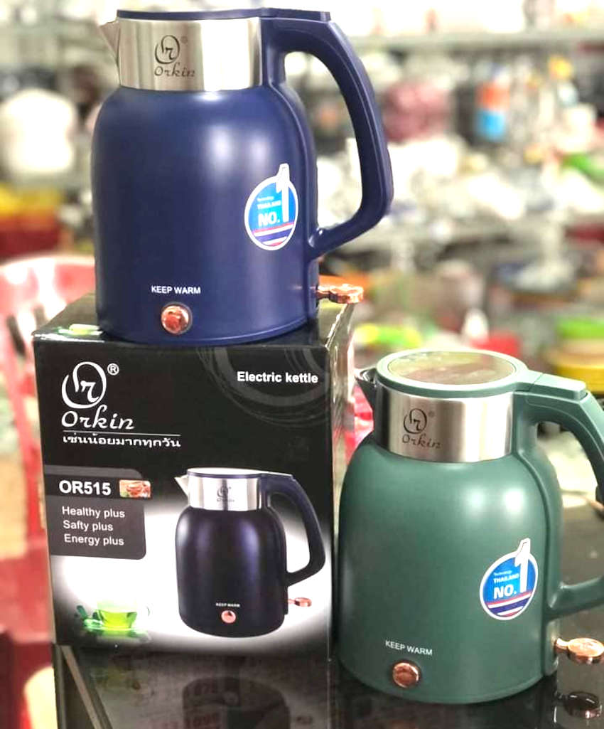 Ấm đun nước siêu tốc Inox 304 giữ nhiệt Orkin Thái Lan OR515 dung tích 2L Thương hiệu: Orkin Thái Lan Xuất xứ: Thái Lan - Dung tích: 2L - Điện áp : 220V-50Hz