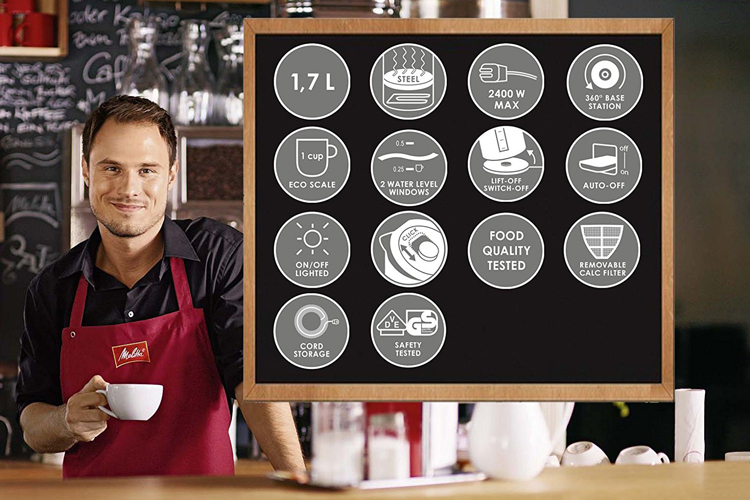 Ấm đun nước Melitta Easy Aqua có thiết kế nhỏ gọn, không chiếm nhiều không gian diện tích giúp bạn dễ dàng sắp xếp, bố trí ngay ngắn trong gian bếp của gia đình để tiện cho việc sử dụng hằng ngày.
