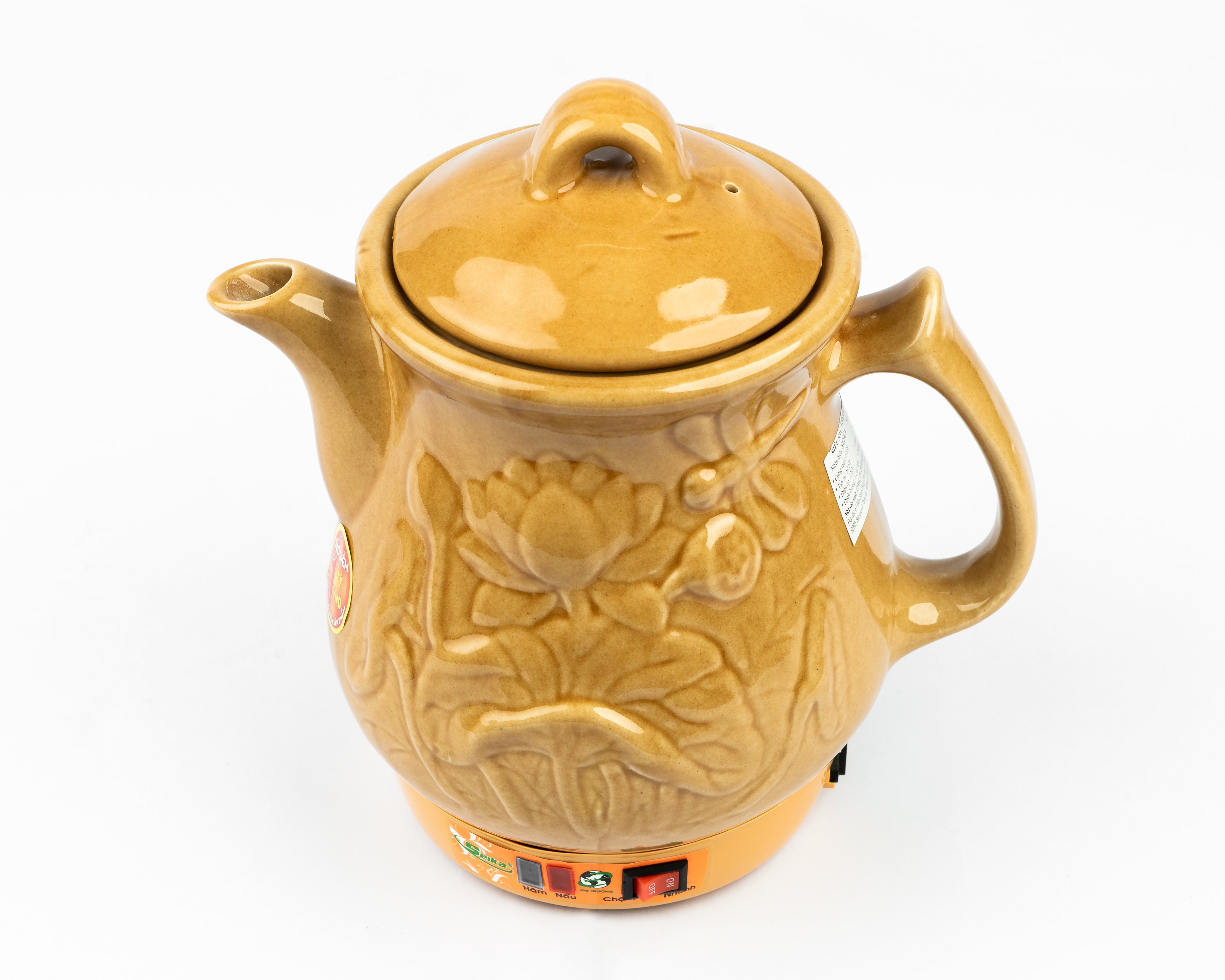 Dung tích: 2.8 L- Công suất: 450W- Thân ấm thiết kế với hoa văn ông già - củ sâm- Nguồn gốc sứ từ làng gốm Bát Tràng nổi tiếng- Chất liệu gốm được nung ở