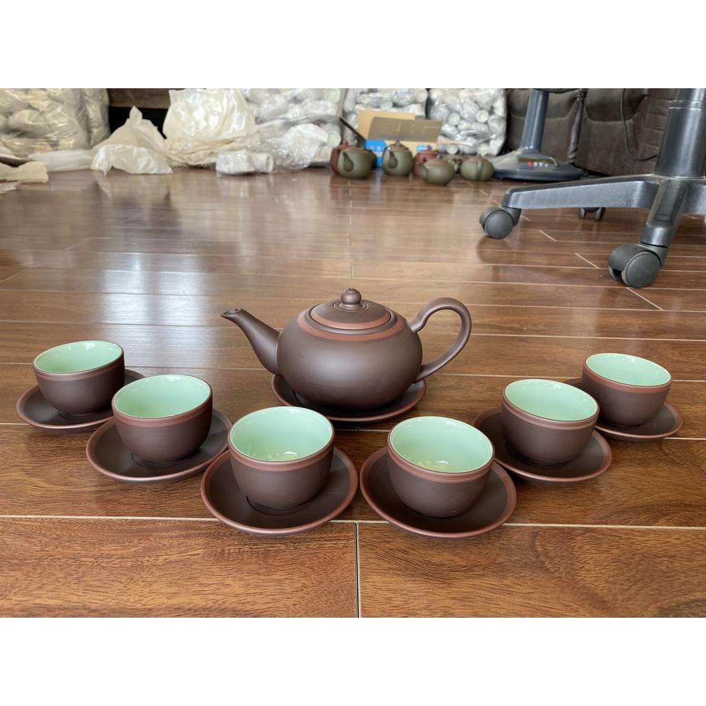 ✨Ấm trà tử sa bát Tràng Tống mầu nâu gụ chỉ đỏ lòng xanh