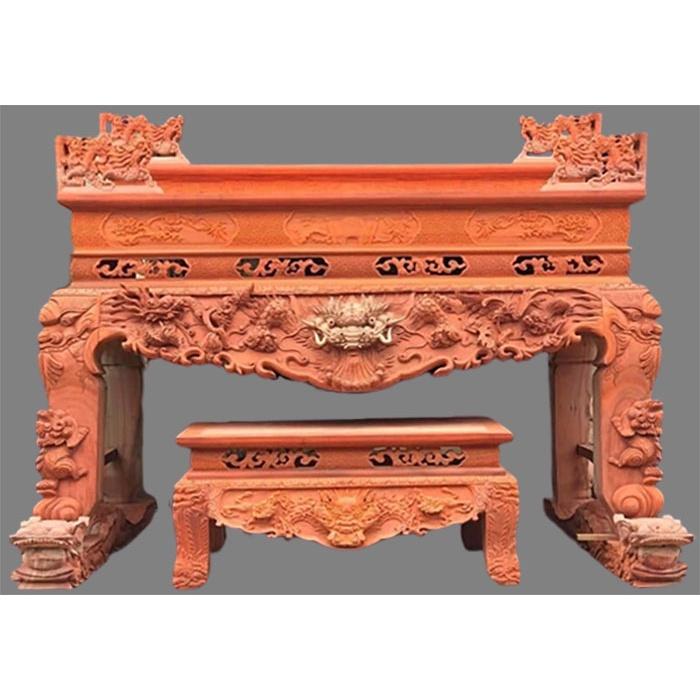 Bàn thờ gỗ hương đá vách ngăn cnc mẫu như ý