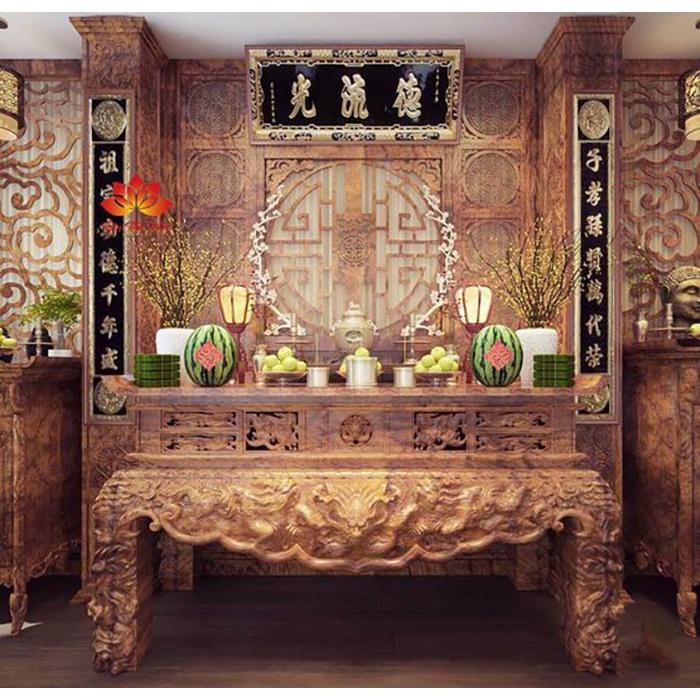 Mẫu bàn thờ gia tiên hiện đại 2022 gỗ hương vân