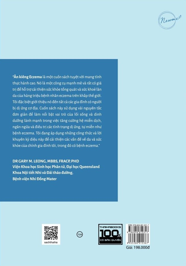 Tác giả biết rằng khi bị eczema, bạn phải trải qua những cơn đau đớn và ngứa ngáy vô cùng. Và nếu con mình hoặc bạn bè bị bệnh thì bạn cũng khổ sở chẳng kém. Đôi khi những khổ sở đau đớn nhất lại là động lực mạnh mẽ nhất thúc đẩy bạn không ngừng tìm ra các phương pháp điề trị mới hiệu quả hơn và thực sự phù hợp với bản thân. Tác giả Karen hy vọng bạn thích chế độ ăn này và chúc bạn thành công trong nỗ lực chữa bệnh eczema và có một làn da tuyệt đẹp.