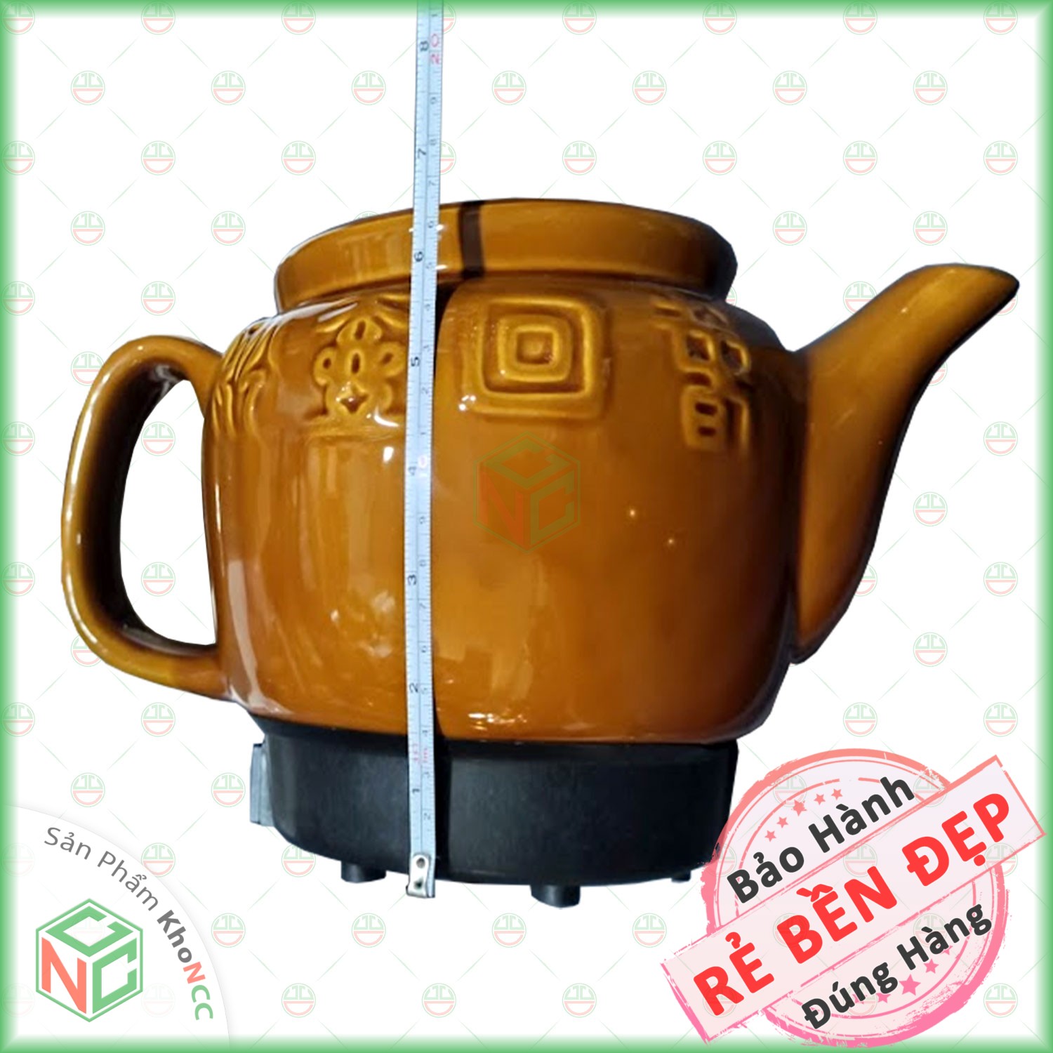- Chất liệu gốm cao cấp phủ men không chì chống phai màu cũng như trầy xước, khi gõ vào thân siêu t.huốc bạn sẽ nghe tiếng rất trong chứ không đục như một số sản phẩm khác. Mặt ngoài của siêu t.huốc được phủ một lớp men bóng không bị phai màu, khó trầy xước cũng như ko bị bám bẩn.