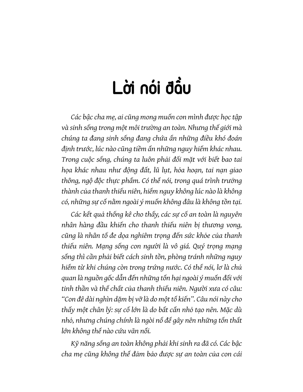 An toàn trong ăn uống và sơ cấp cứu cung cấp những kiến thức về phòng cháy chữa cháy cũng như kỹ năng thoát hiểm an toàn, những kiến thức về vệ sinh an toàn thực phẩm, đề phòng bị ngộ độc thức ăn, cách ăn uống một cách khoa học để trưởng thành một cách khỏe mạnh, một số kỹ thuật sơ cấp cứu giúp bảo toàn tính mạng cho nạn nhân, người thân và chính bản thân mình.