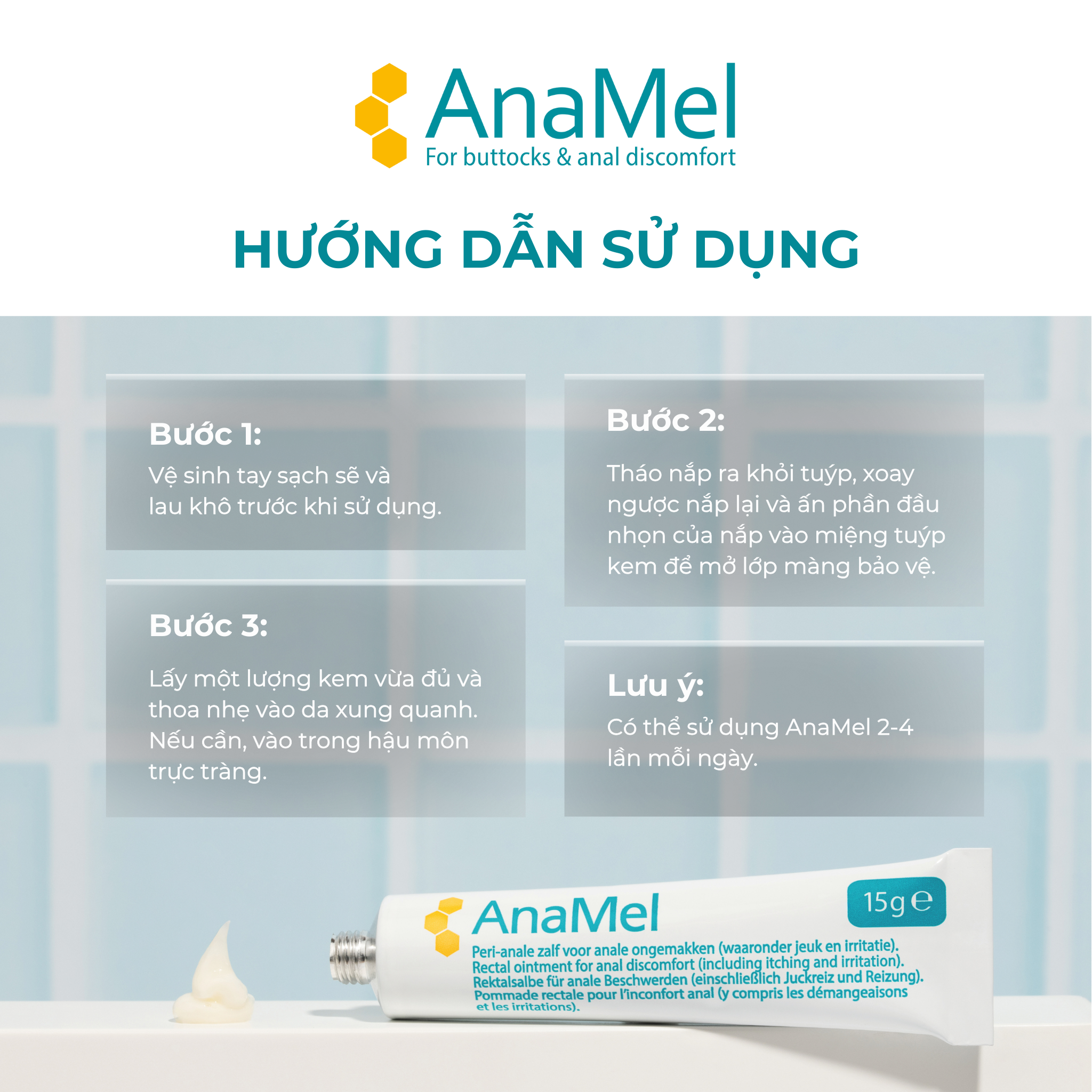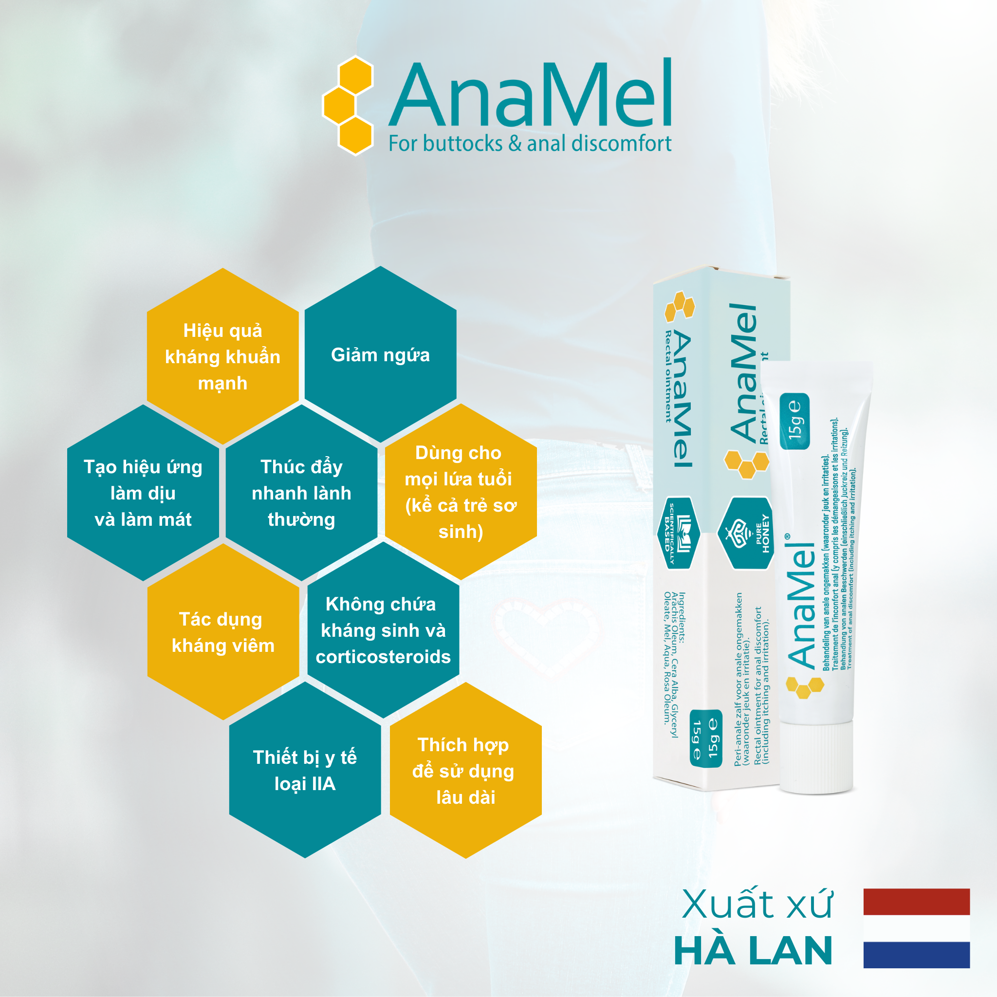 - AnaMel giúp làm giảm các triệu chứng ở hậu môn, chẳng hạn như ngứa, kích ứng, đau và cảm giác nóng rát.