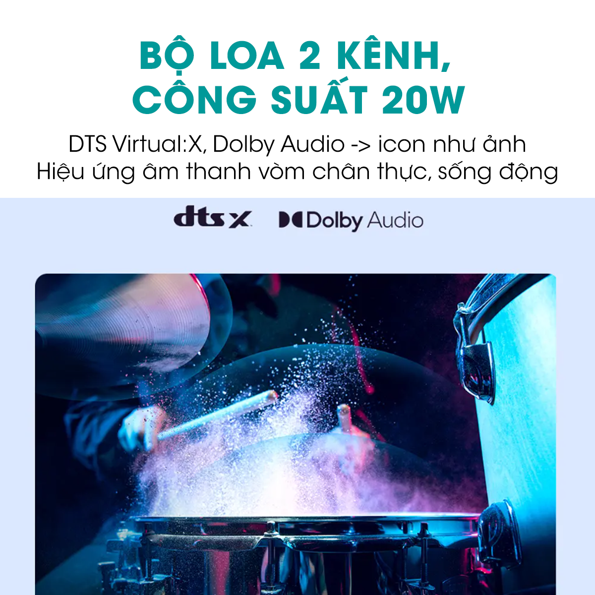- Bạn sẽ đắm chìm trong không gian âm thanh vòm với công nghệ DTS Virtual X. Các đoạn hội thoại sẽ trong trẻo và dễ nghe hơn, mọi chi tiết âm thanh trong phim từ những tiếng súng đến những âm thanh lớn như các vụ nổ được tái hiện chi tiết và sống động hơn.