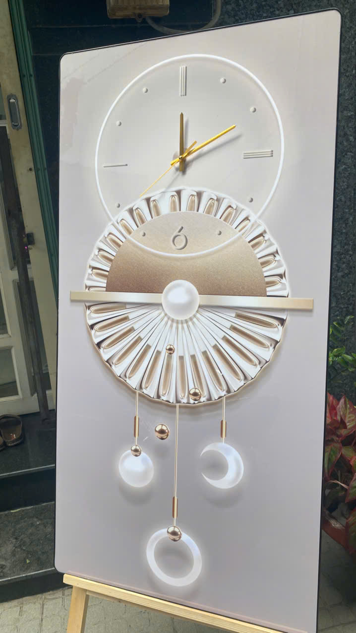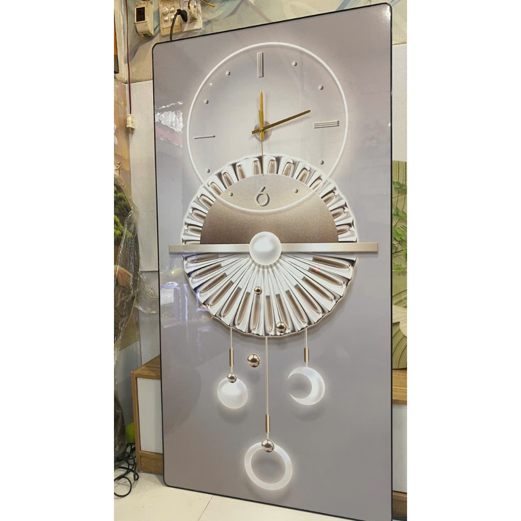 Tranh đồng hồ tráng gương họa tiết sang trọng - Kích thước của tranh : Kích thước : 35x70cm 45x90cm 55x110cm 60x120cm - Chất liệu : Mặt mica sáng bóng (không phải kính) - Gỗ