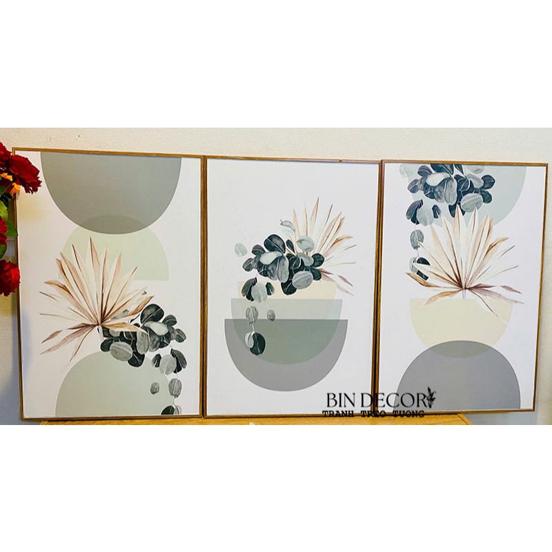 Tranh in trên vải canvas hội họa Kích thước: 40x60cm x3 Tấm lưng bằng gỗ MDF nhập khẩu. Khung vật liệu composite. Không bị ảnh hưởng bởi nước, ẩm mốc. Tặng kèm đinh 3 chân