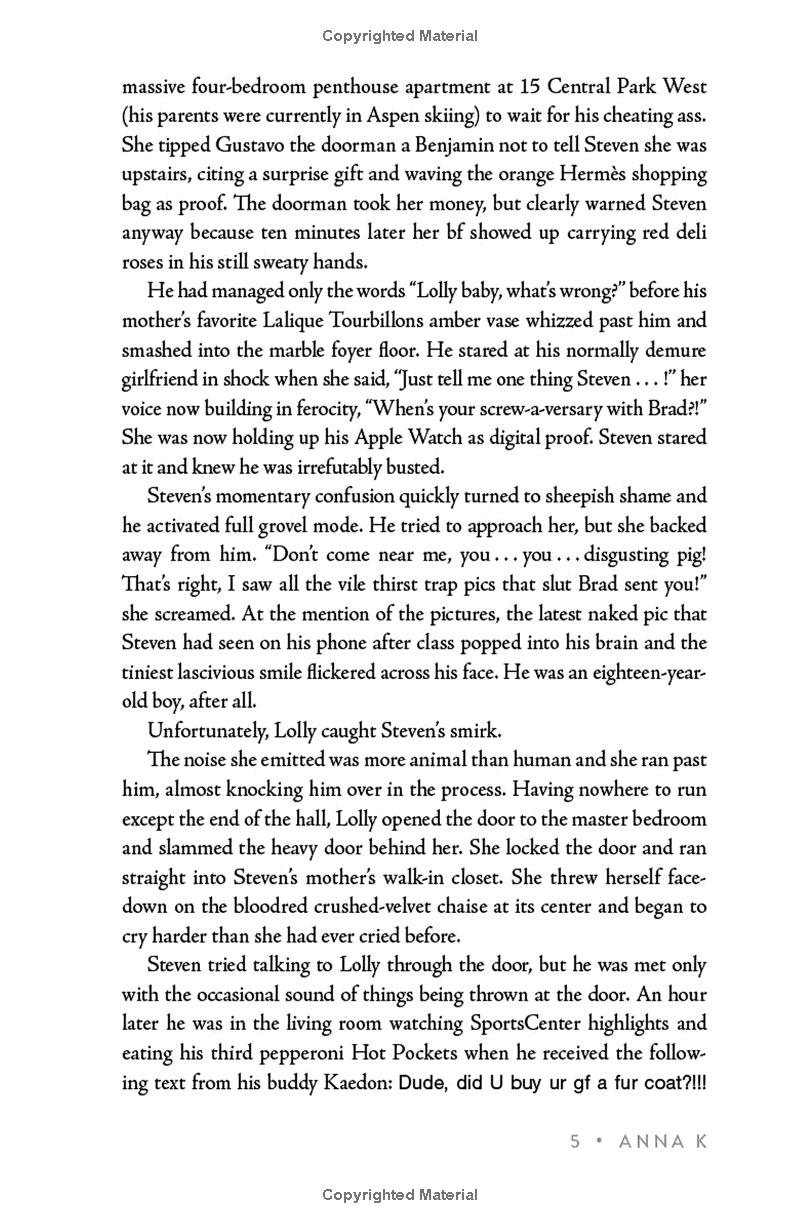 Anna K is the golden girl of New York high society. She's beautiful, she's kind, she's unbelievably rich, and she has the perfect boyfriend.