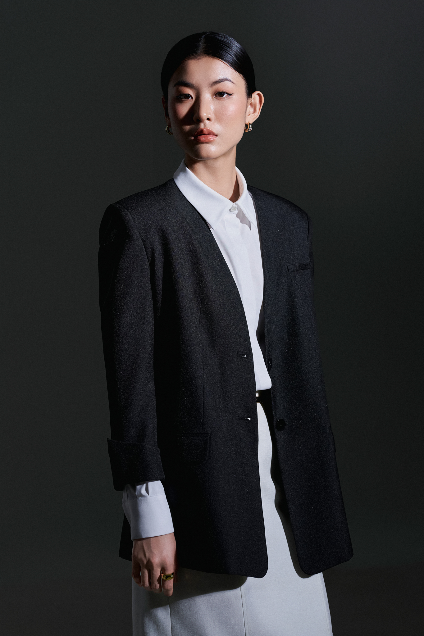 - Thông tin sản phẩm Áo blazer vai rộng, không cổ, cài 2 khuy, tay lỡ dài, có lơ vê. Mỗi lớp vải mềm mại của Vincent Set là sự kết hợp hoàn hảo giữa chất liệu cao cấp và sự tinh tế trong từng đường chỉ, mang lại cảm giác thoải mái và tự tin trong mỗi bước chân tiến đến đỉnh vinh quang của mọi Quý cô.