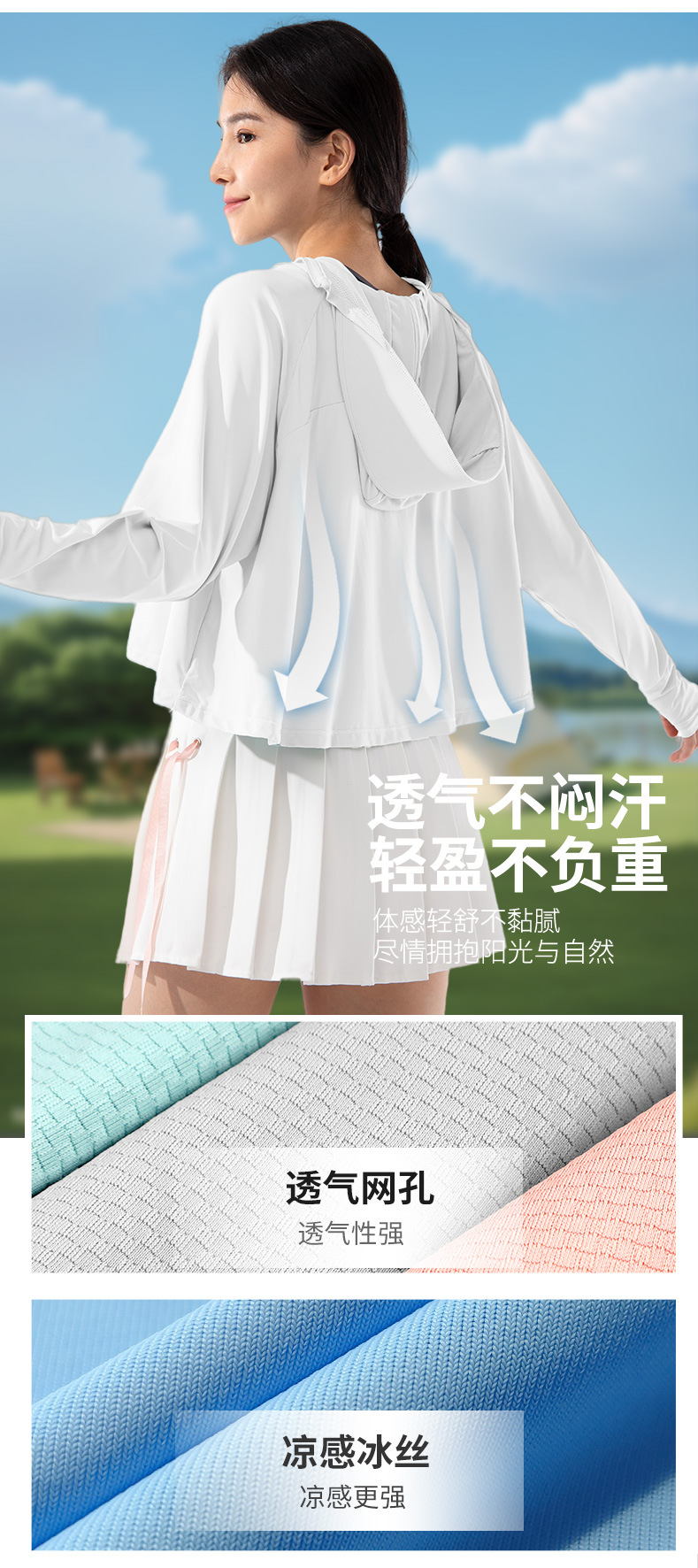 Áo khoác chống nắng được thiết kế vô cùng tiện lợi cùng chất liệu vải hỗ trợ chống nắng có chỉ số UPF50++ giúp chống tia cực tím lên đến 99%, là sự chọn lựa