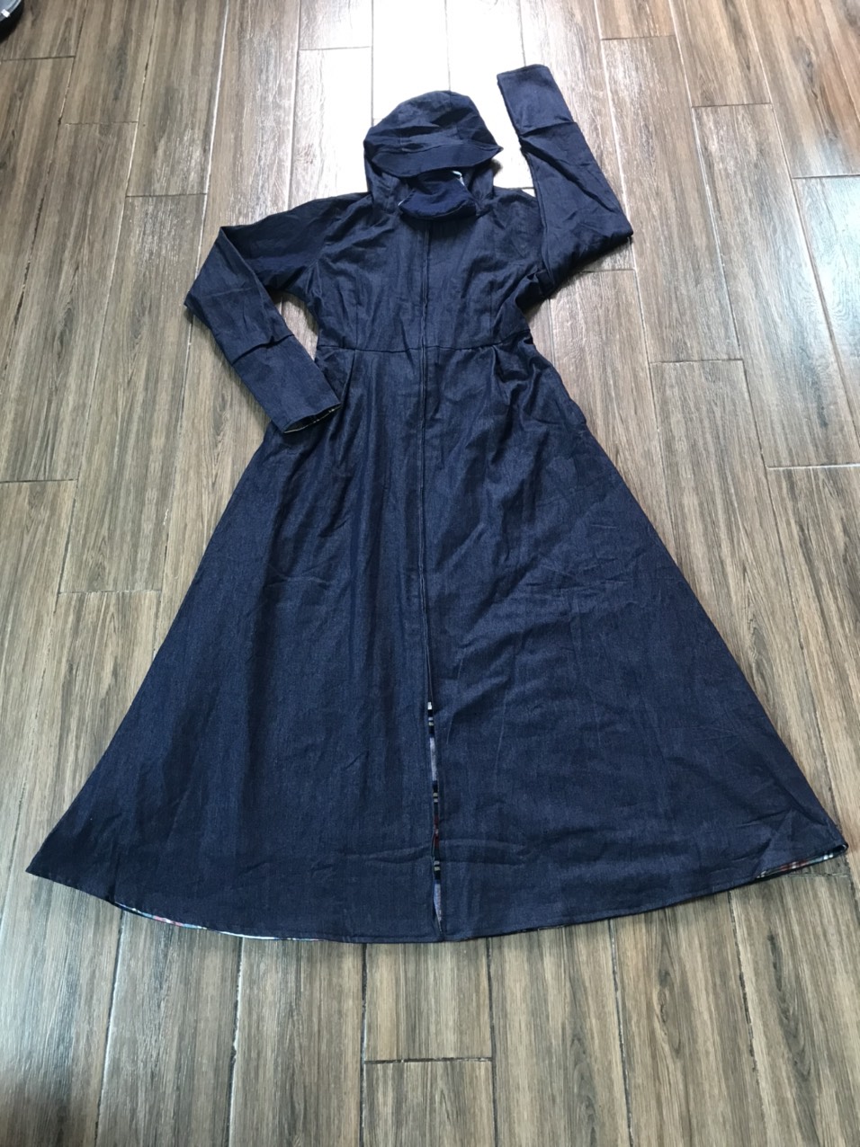 Áo chống nắng nữ toàn thân vải bò jean 2 lớp dáng xòe không xẻ sau che kín chân thoáng mát mẫu mới 2022