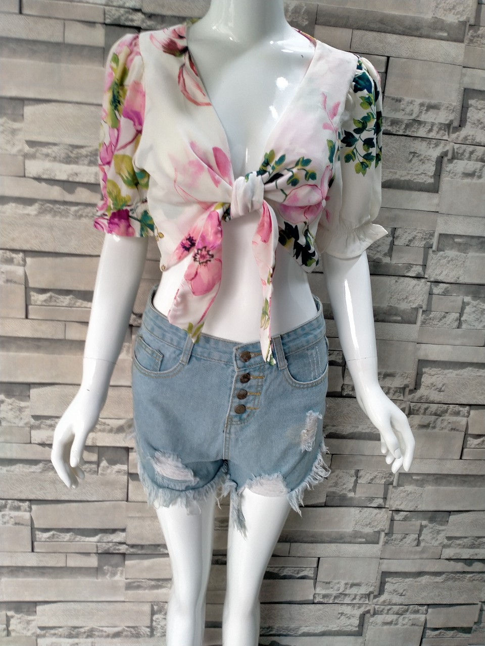 ÁO HOA CROPTOP THẮT NƠ EO XINH SẮN Kiểu Dáng Thanh Lịch, Dễ Phối Cùng Nhiều Kiểu Trang Phục Phom dáng ao chuẩn đẹp Là mẫu quần thiết kế đường kim mũi chỉ sắc xảo,