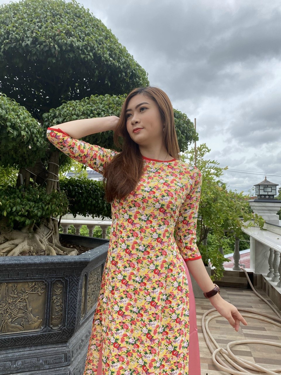 Thiết kế Áo dài nữ hồng vàng họa tiết hoa hồng cao cấp phong cách đường may tỉ mỉ.Áo thiết kế form vừa vặn giúp tôn được đường nét phong cách của các tính đồ yêu phong cách truyền thốngMàu sắc tinh ...