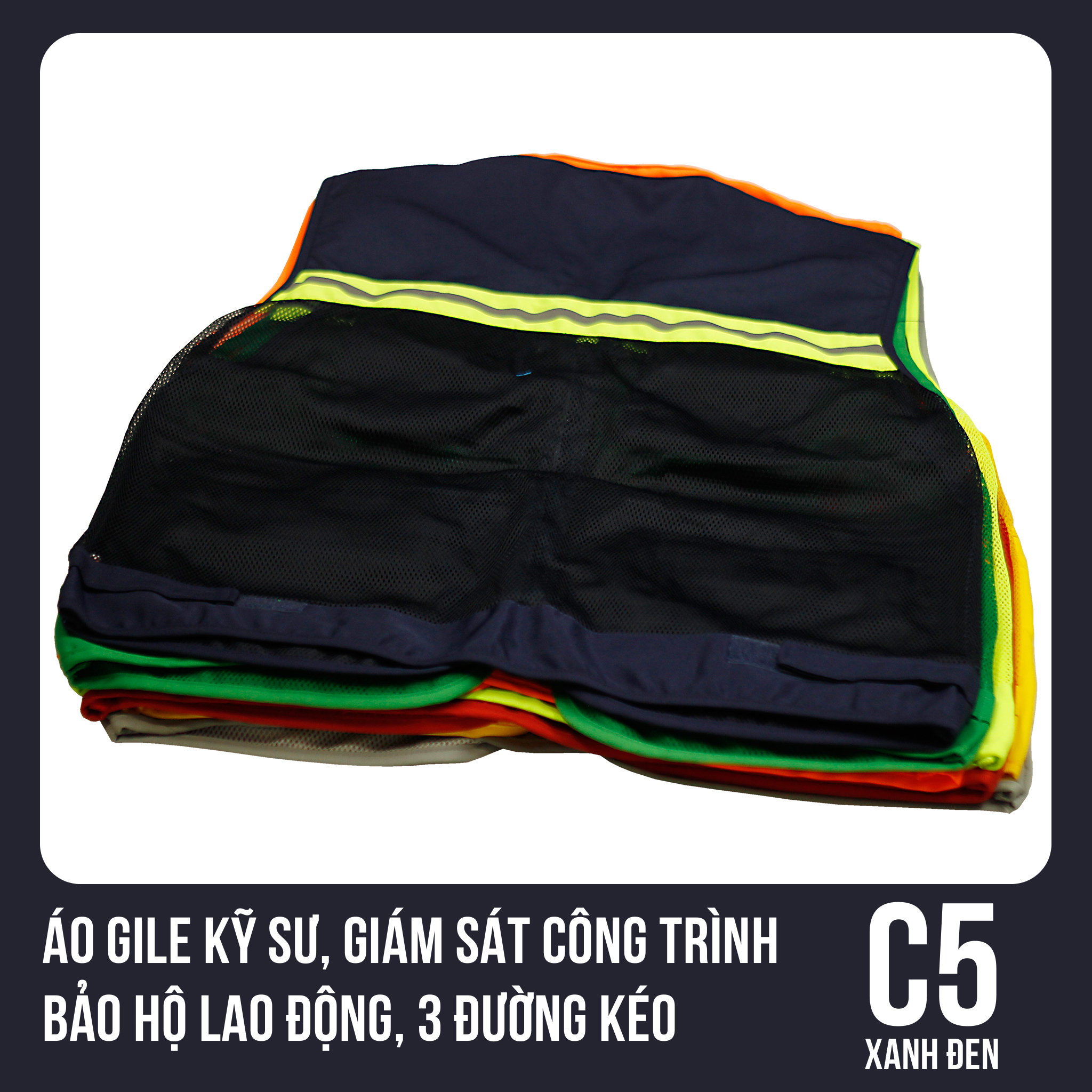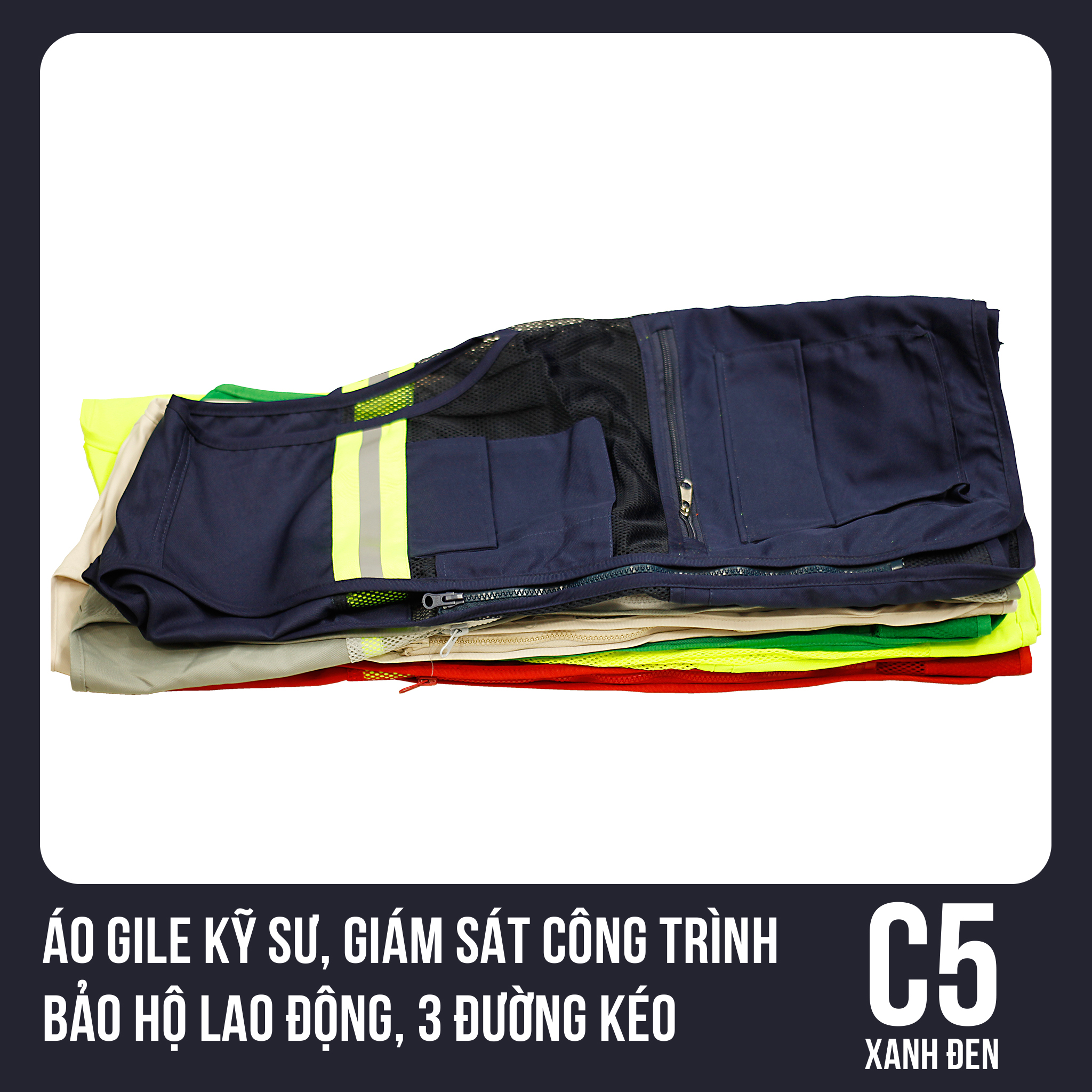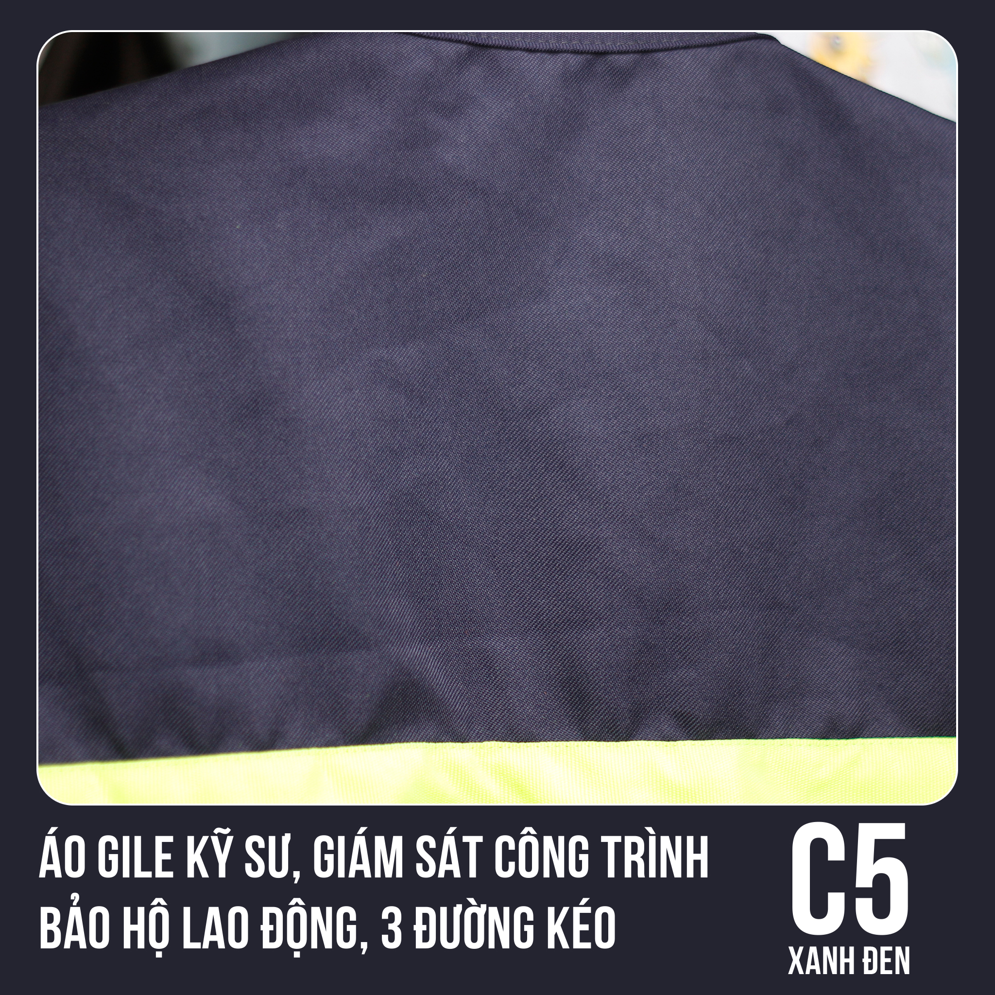 ✨Áo Gile Kỹ Sư, Giám Sát Công Trình, Bảo Hộ Lao Động, 3 Đường Kéo - Mã C5 (Xanh Đen)