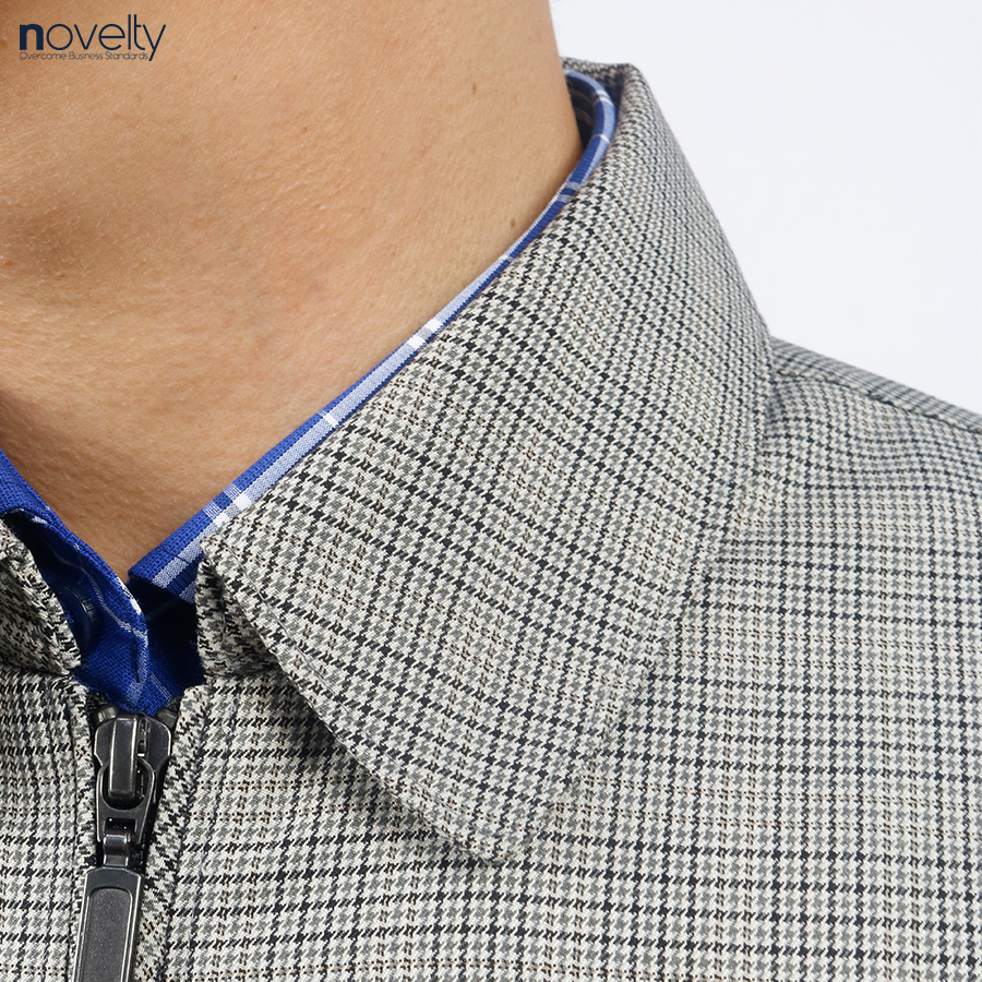 ✨Áo Jacket nam 2 lớp cổ bẻ Novelty Casual caro nhỏ màu xám NJKMCNMT3B2305682