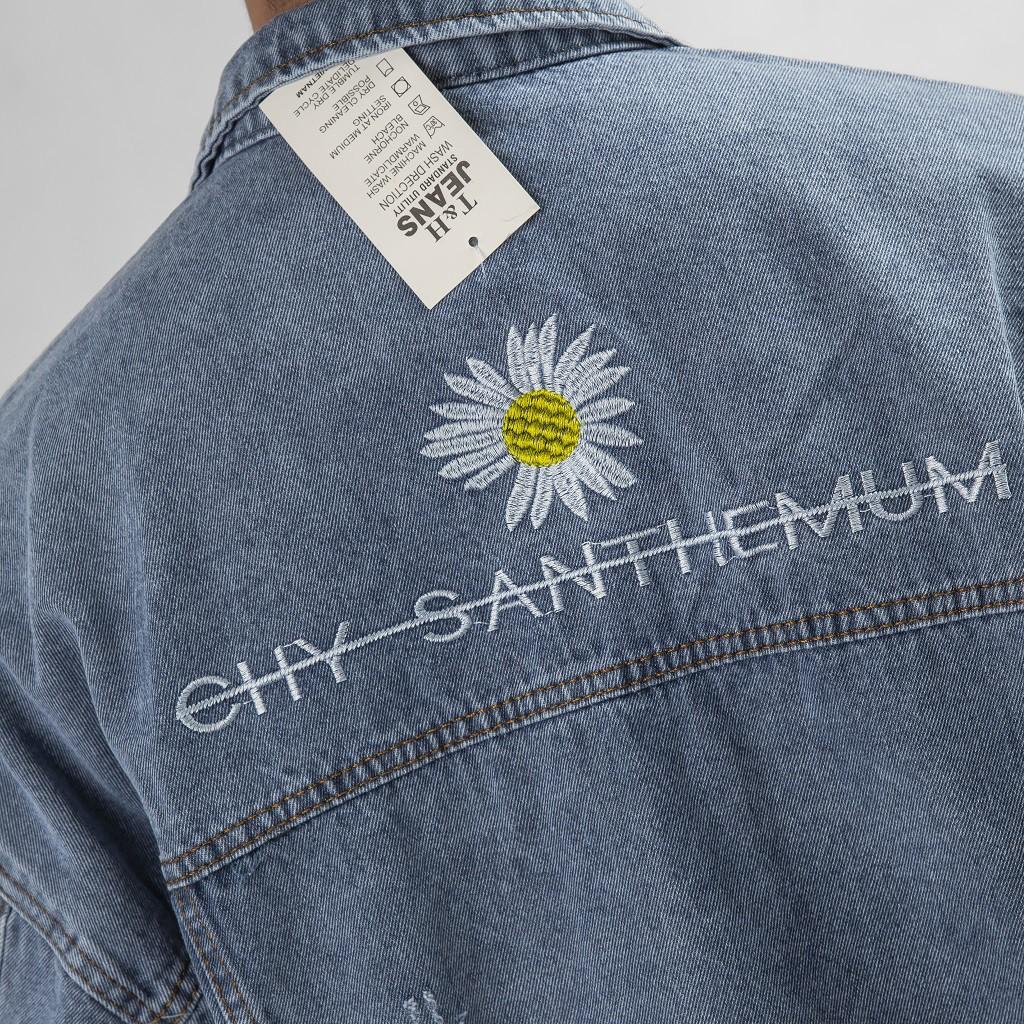 ✨Áo jean nam thêu hình bông cúc, áo khoác thời trang năng động cá tính